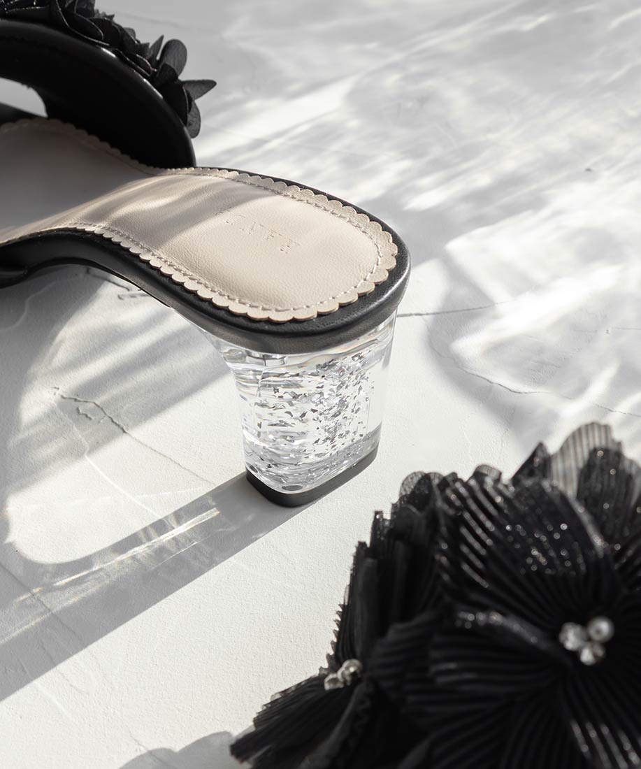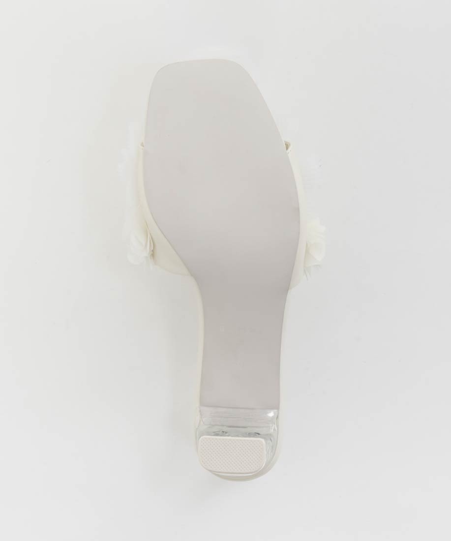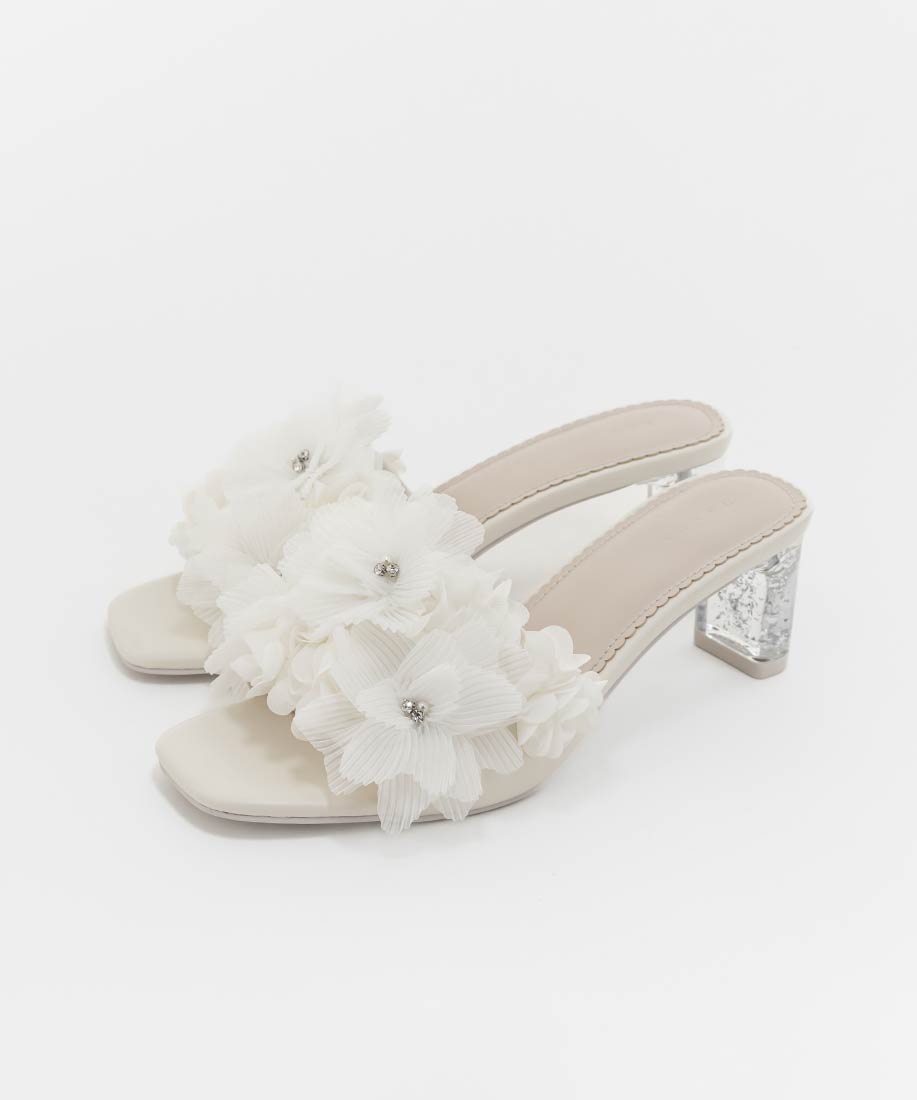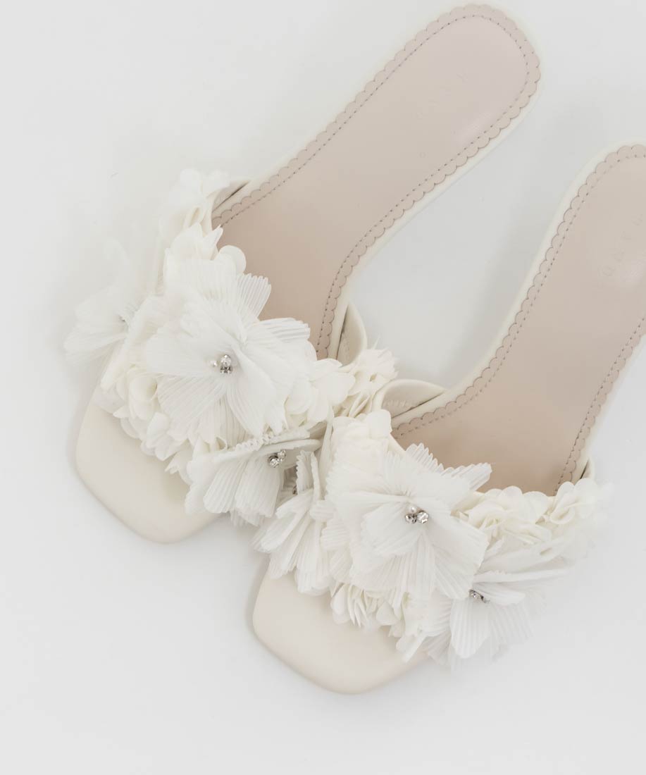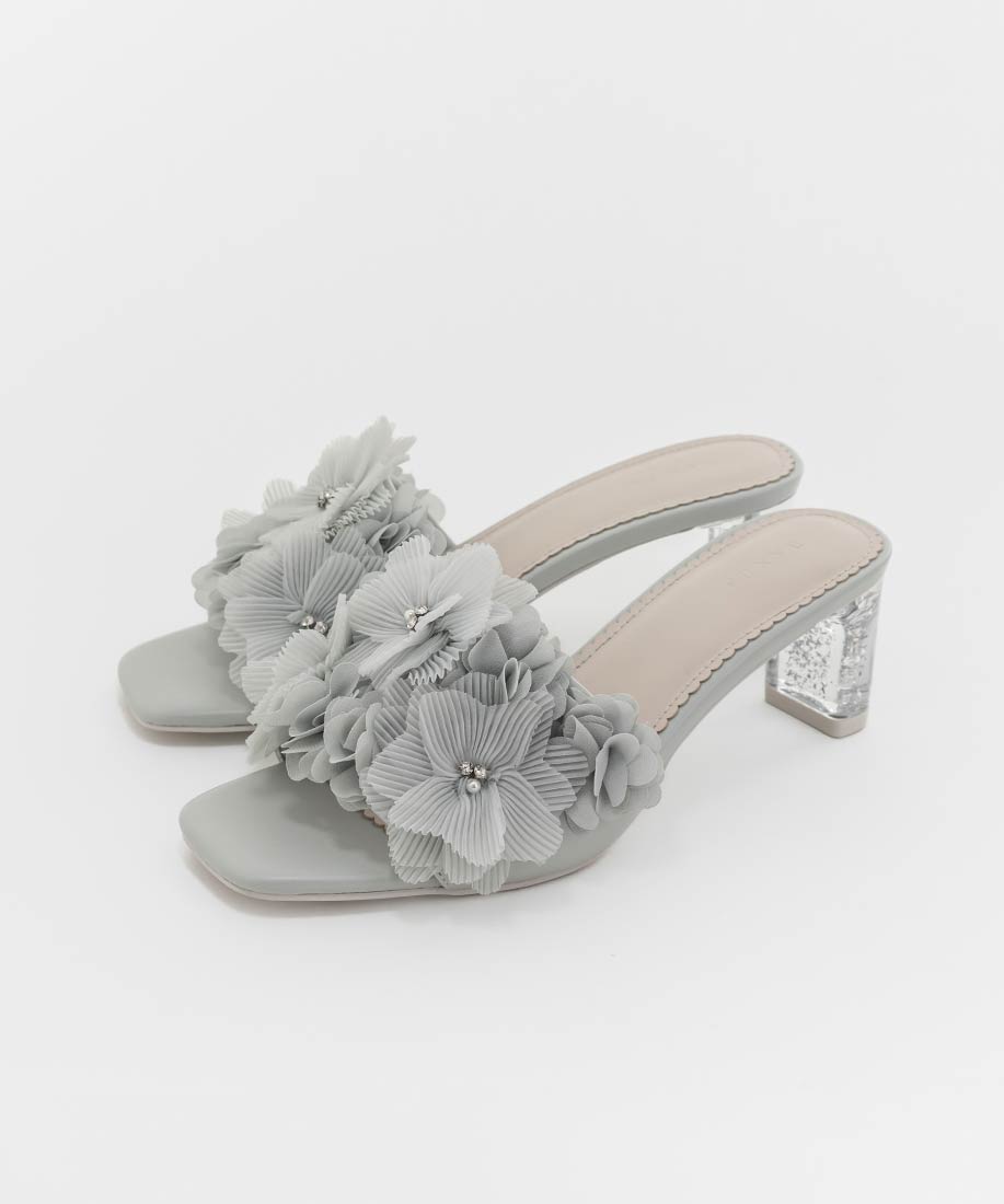 プリーツフラワーミュールサンダル