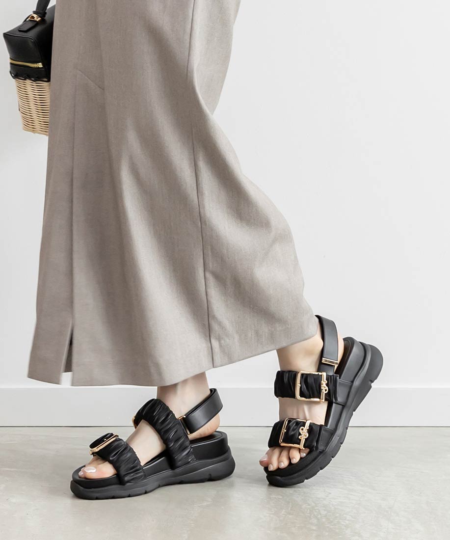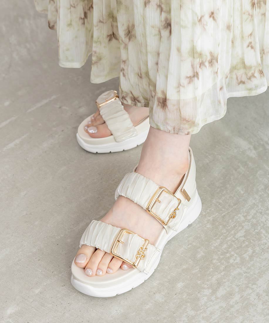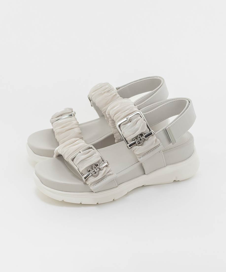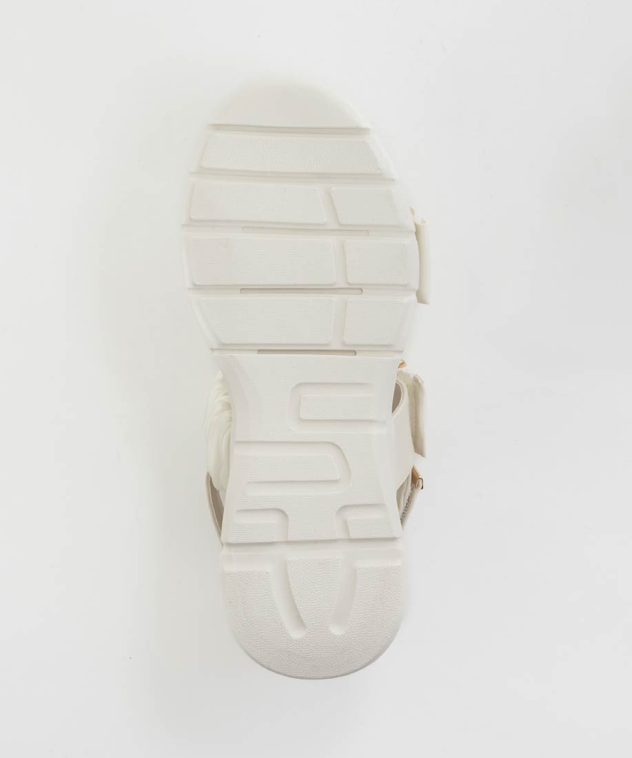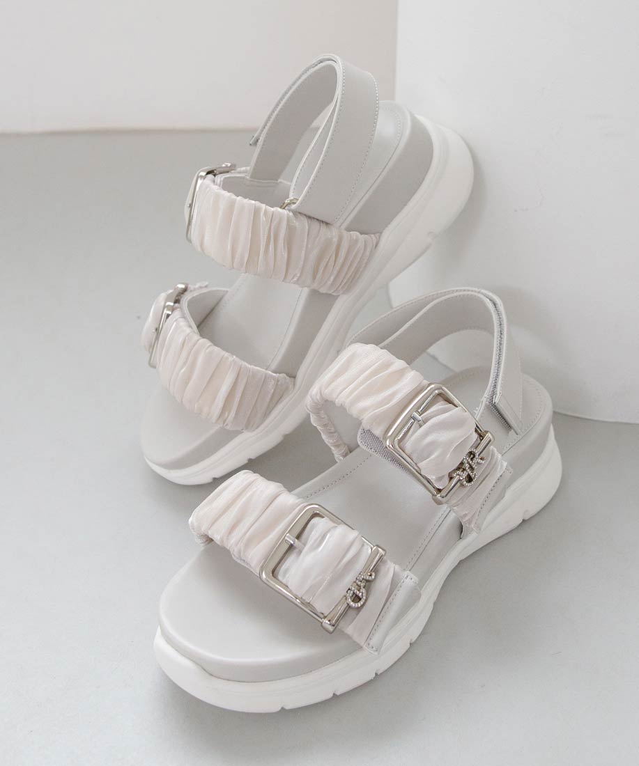 立体感のあるギャザーベルトが印象的なスポーツサンダル。