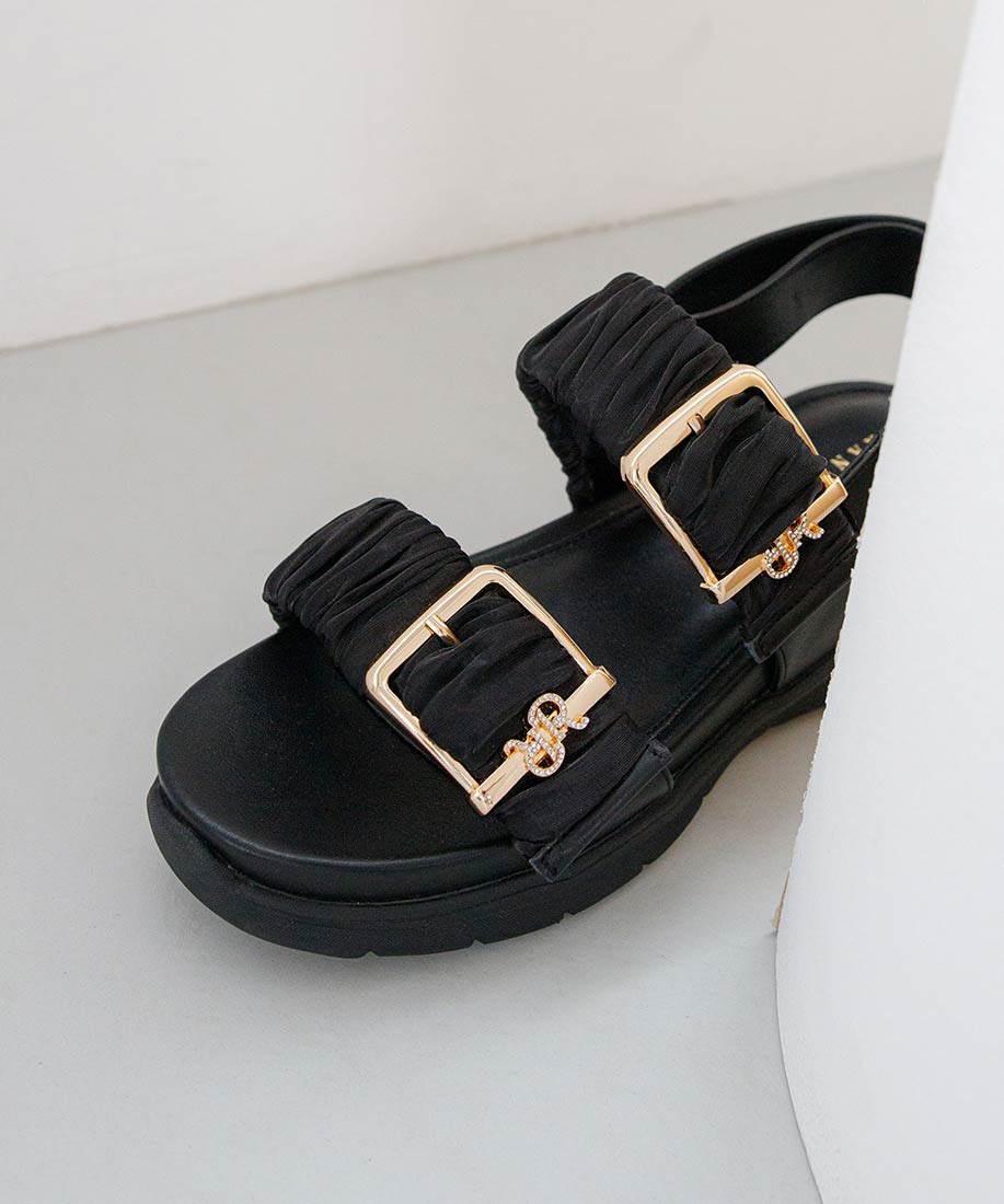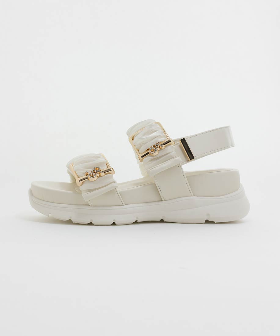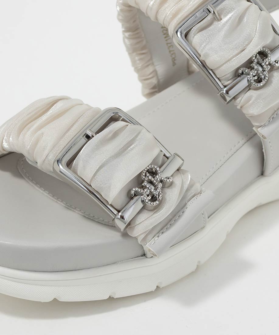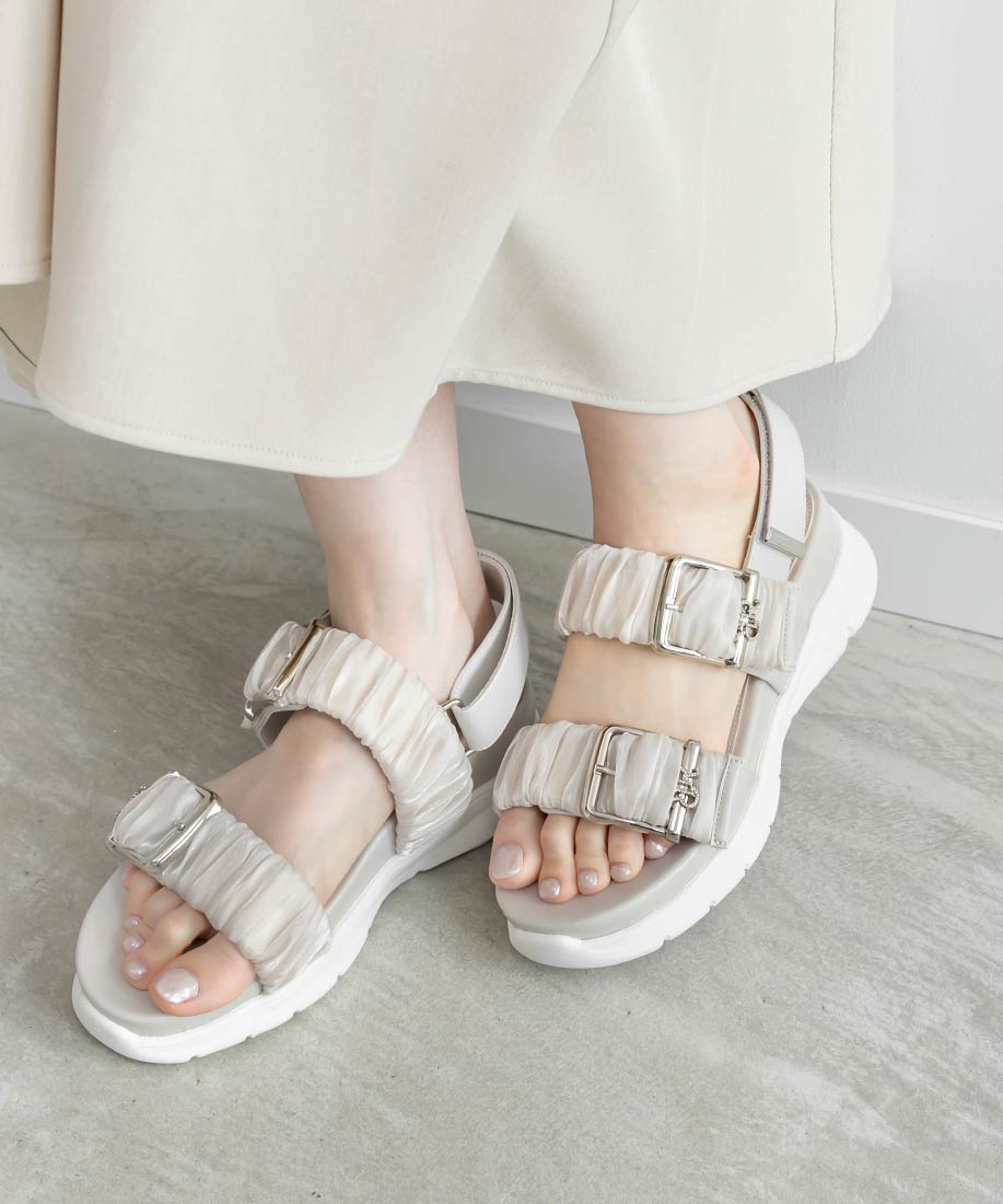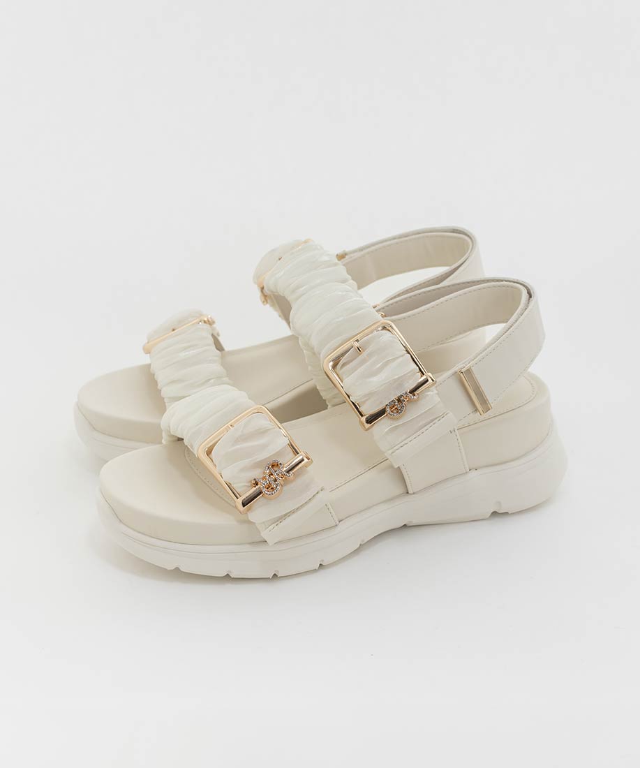 立体感のあるギャザーベルトが印象的なスポーツサンダル。