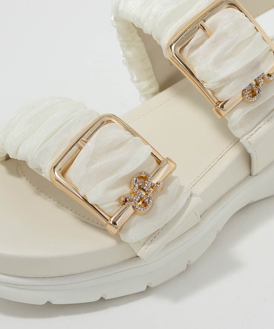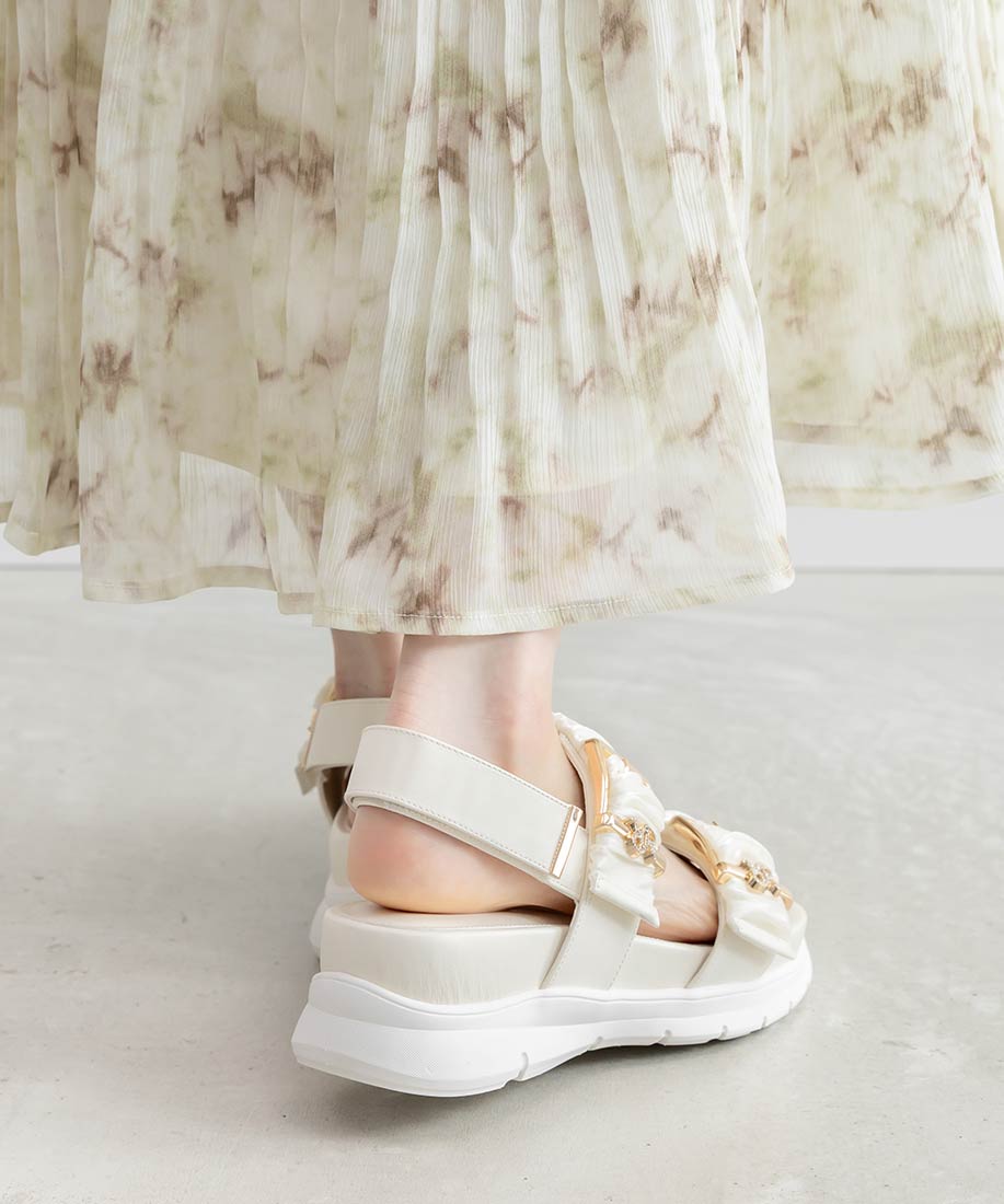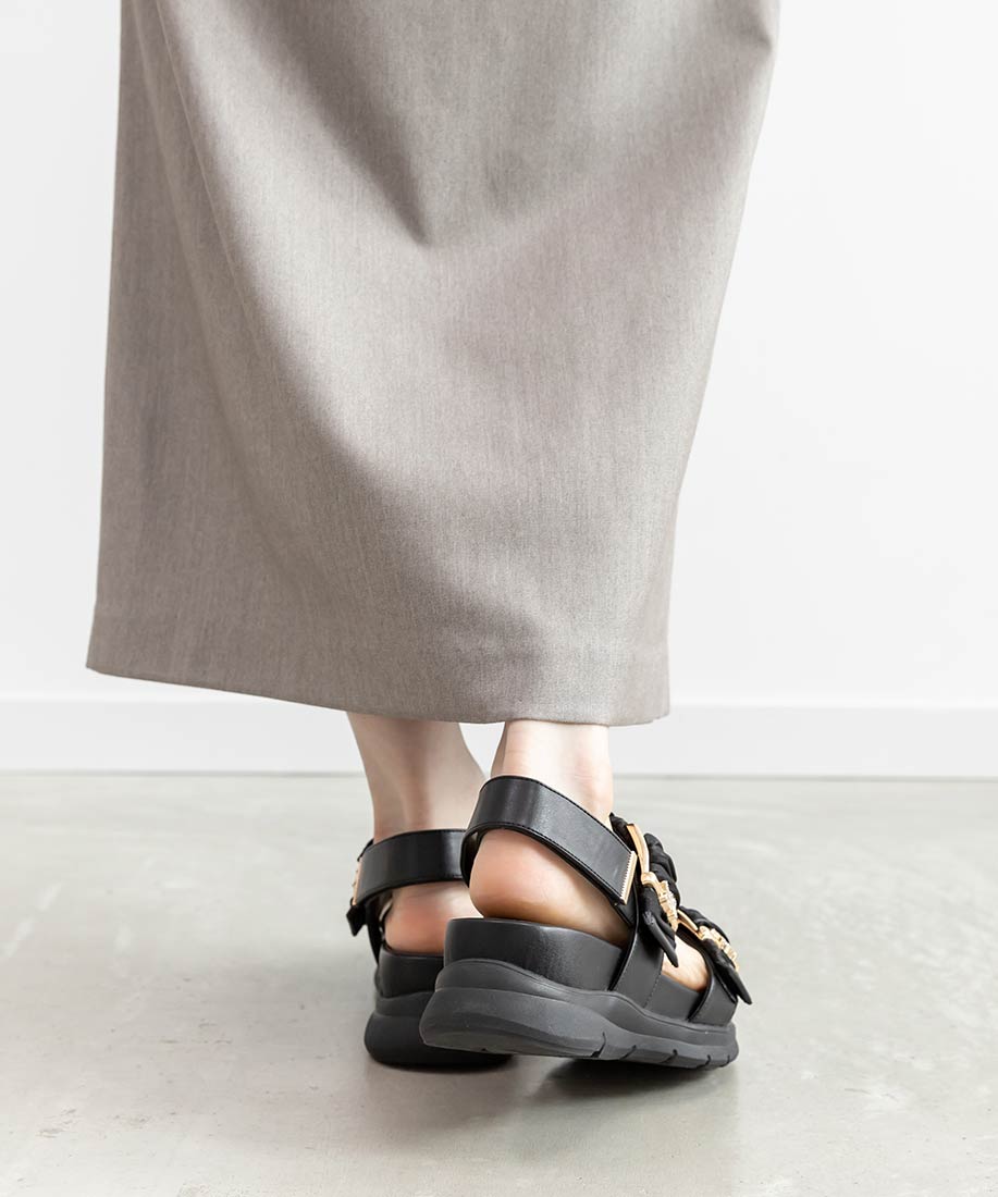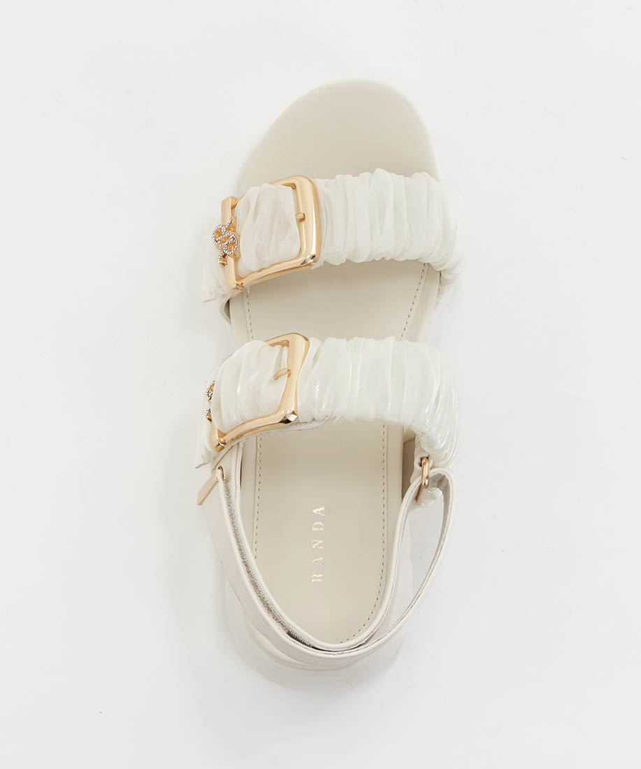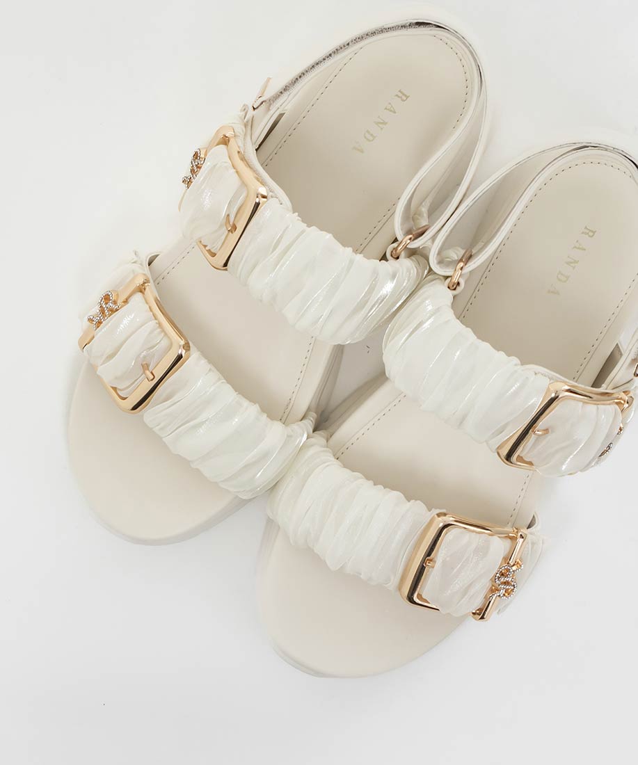 立体感のあるギャザーベルトが印象的なスポーツサンダル。