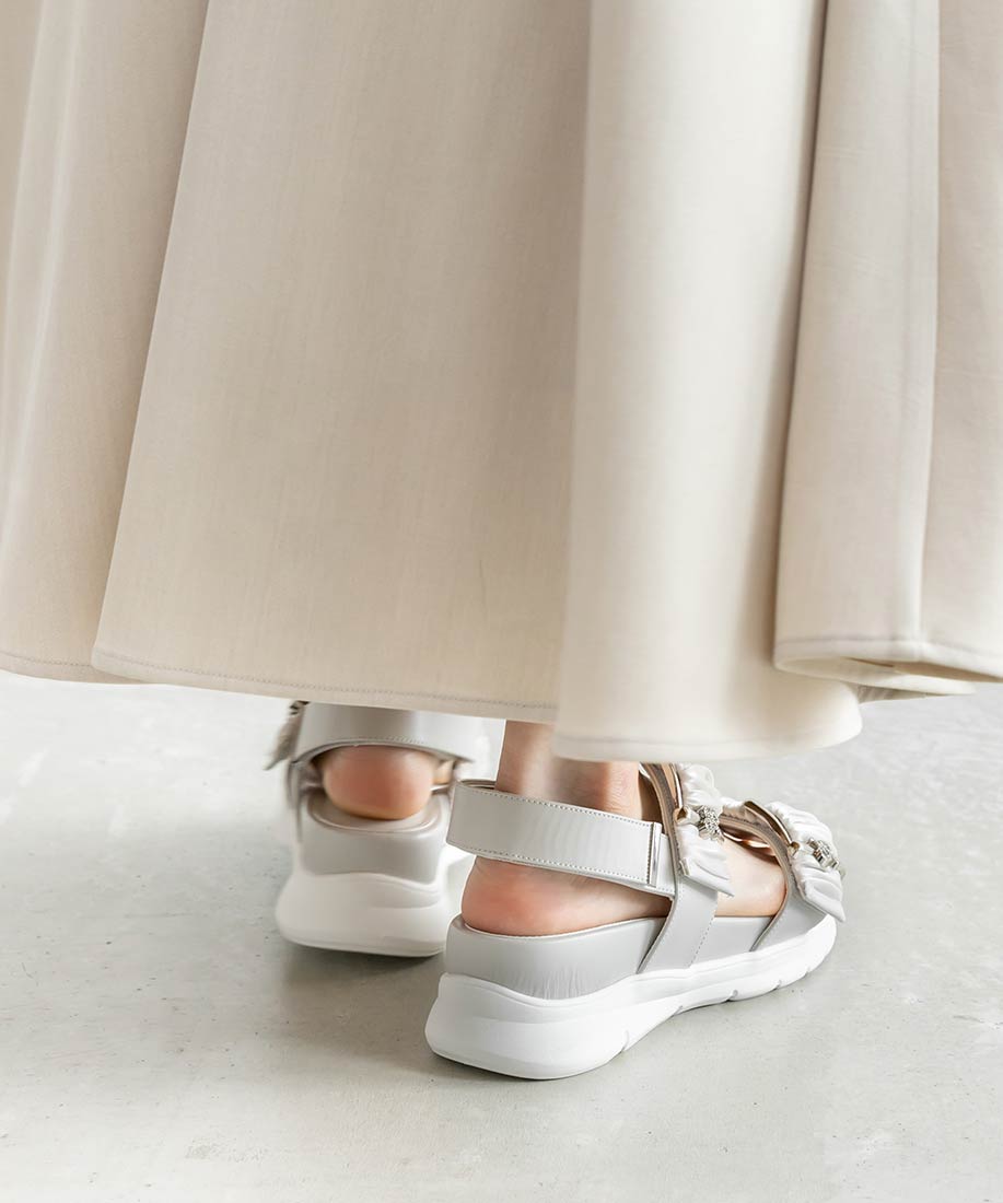 上品で女性らしいデザインがスポーティーなソールにマッチし、幅広いコーディネートに合わせやすい一足です。
