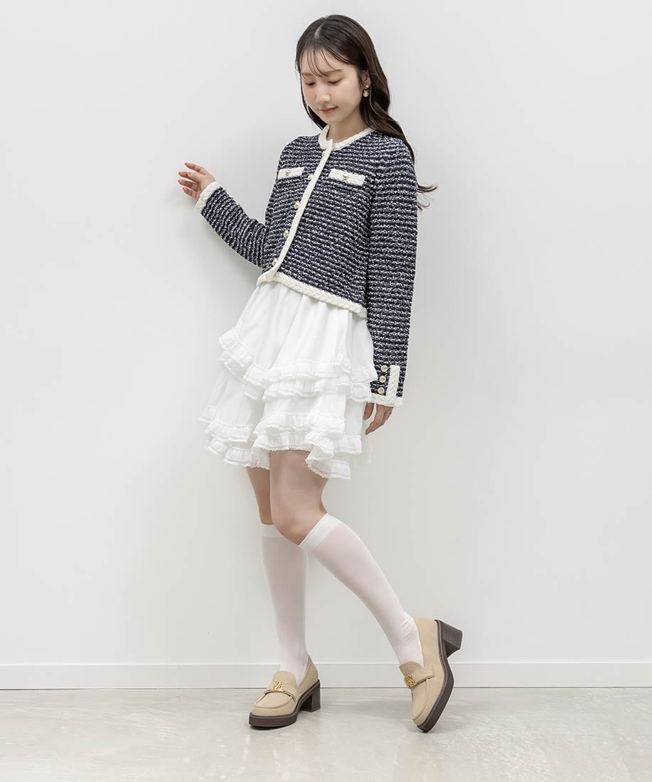 モノグラムベルトがコーディネートのアクセントになり、上品な印象へと導いてくれます。
