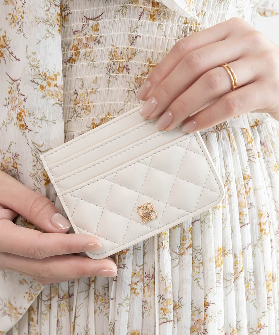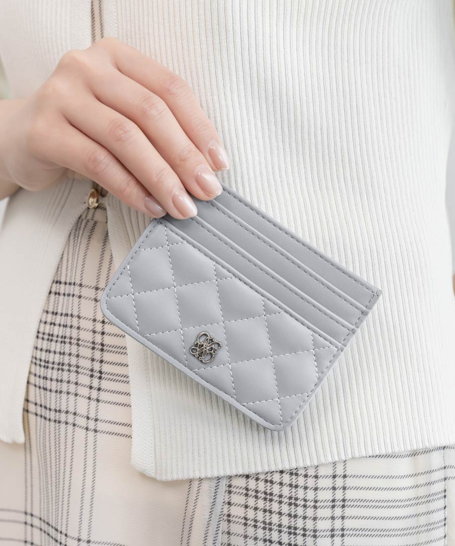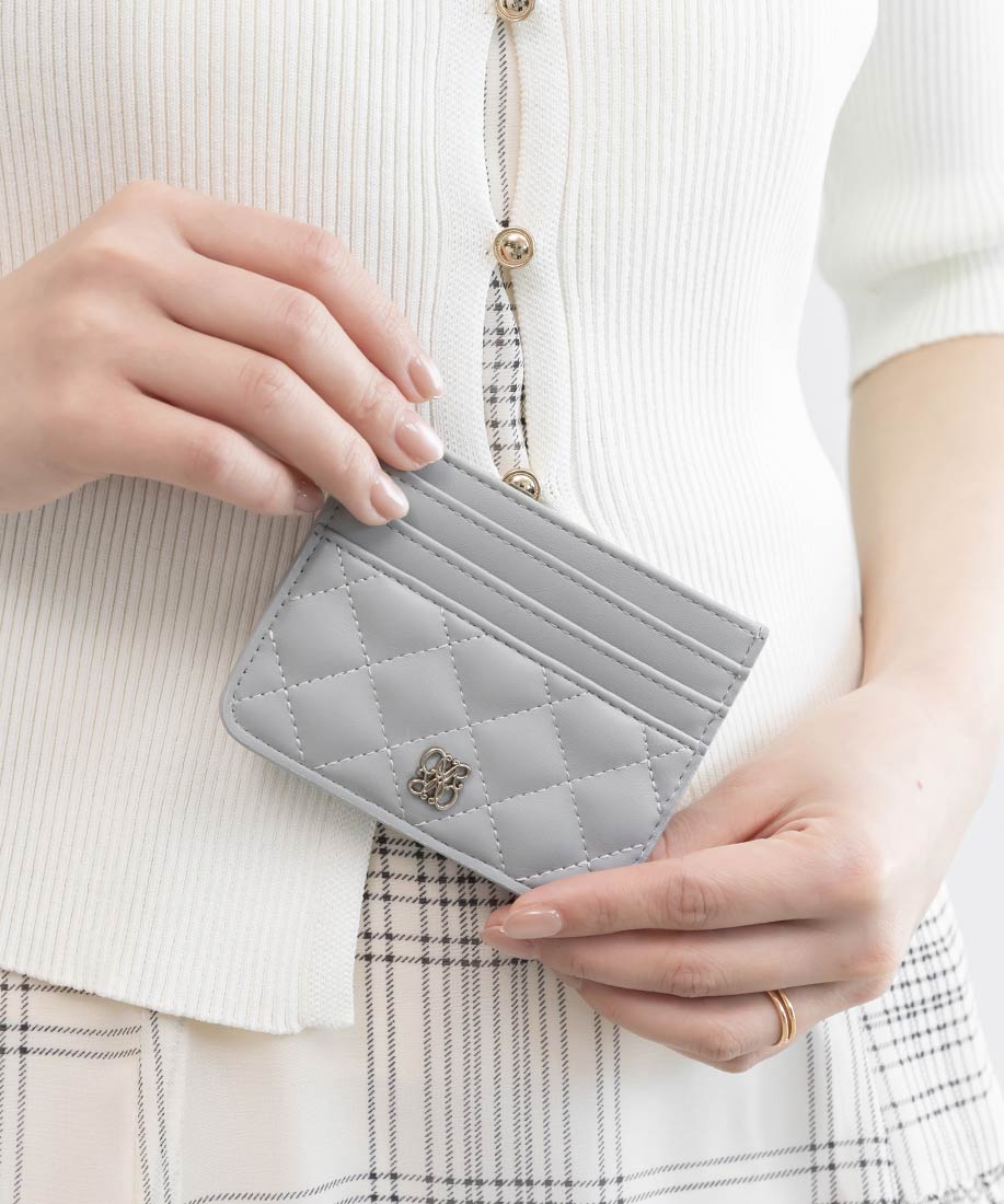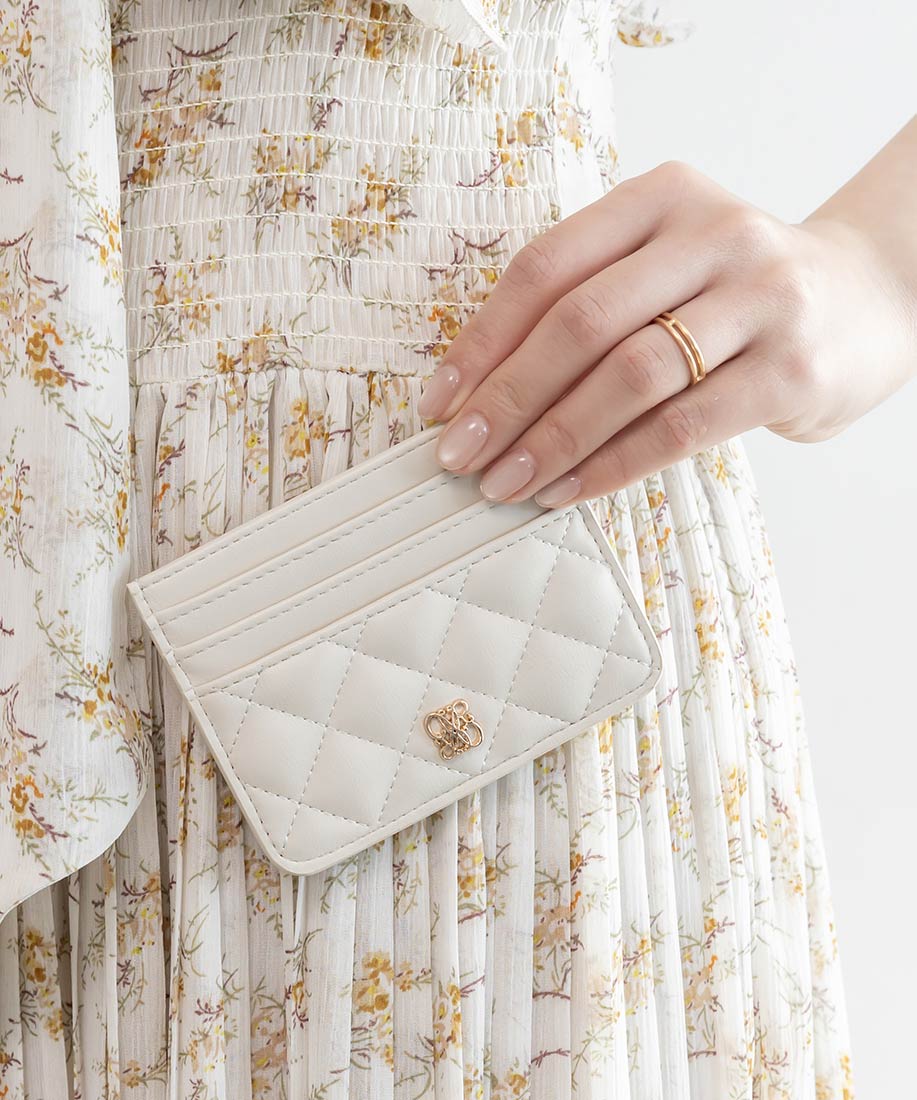 キルティング生地にモノグラムパーツが映える上品な印象のカードケース。