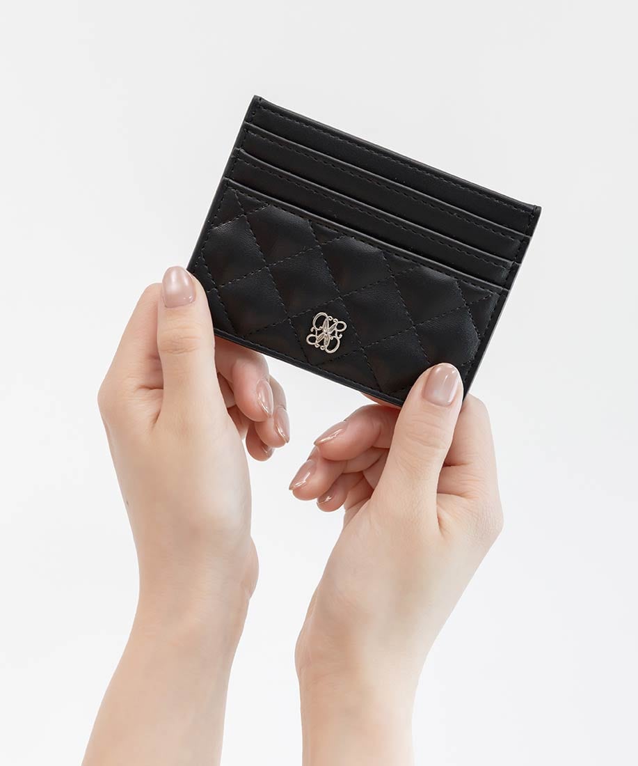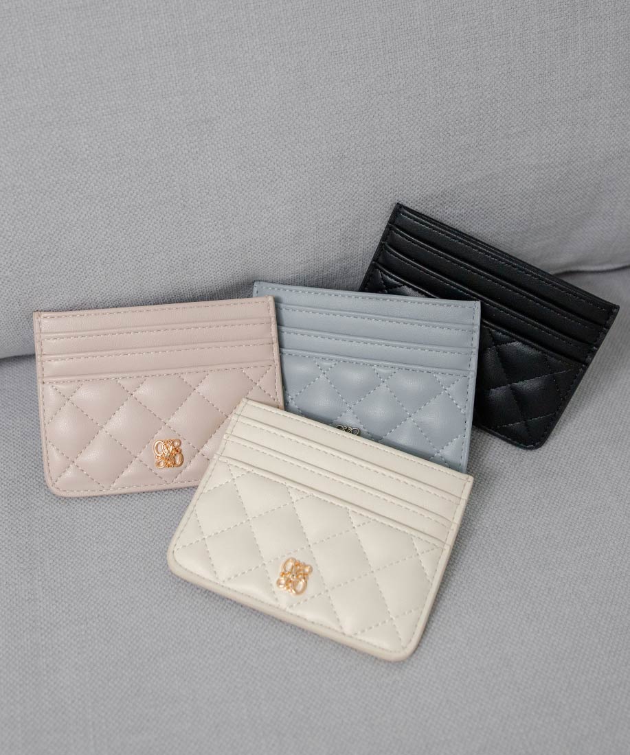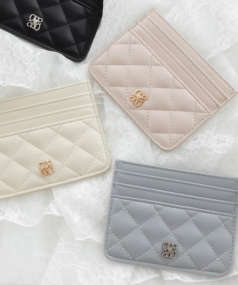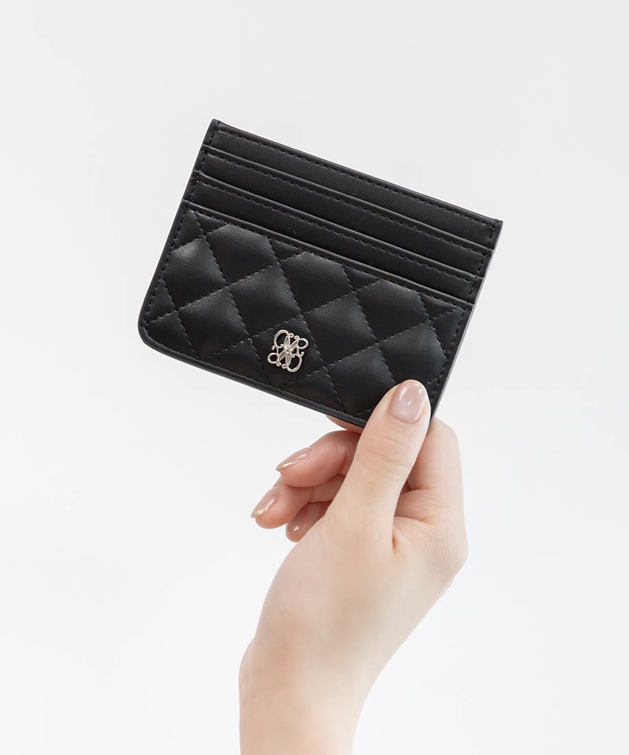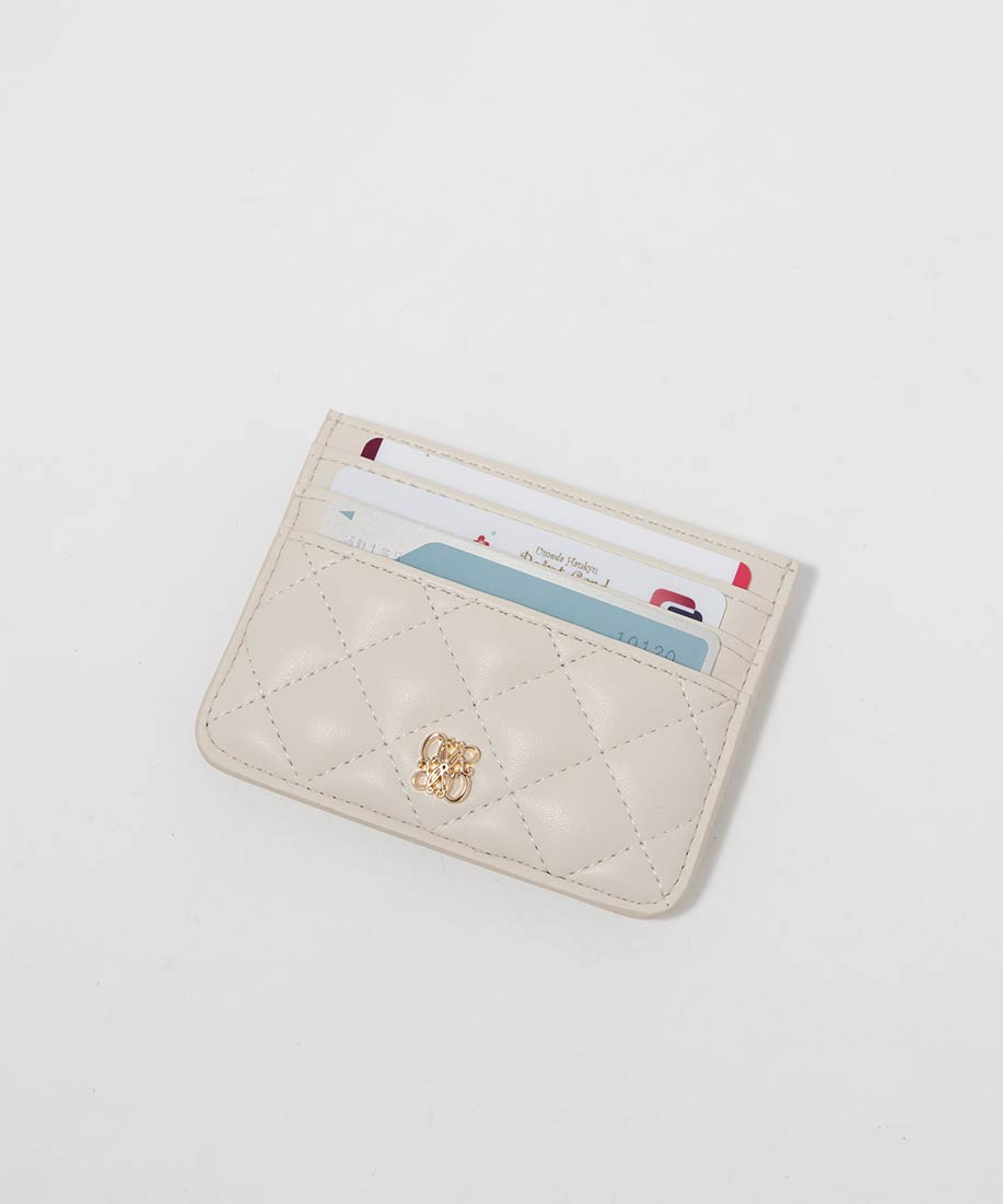 キルティング生地にモノグラムパーツが映える上品な印象のカードケース。