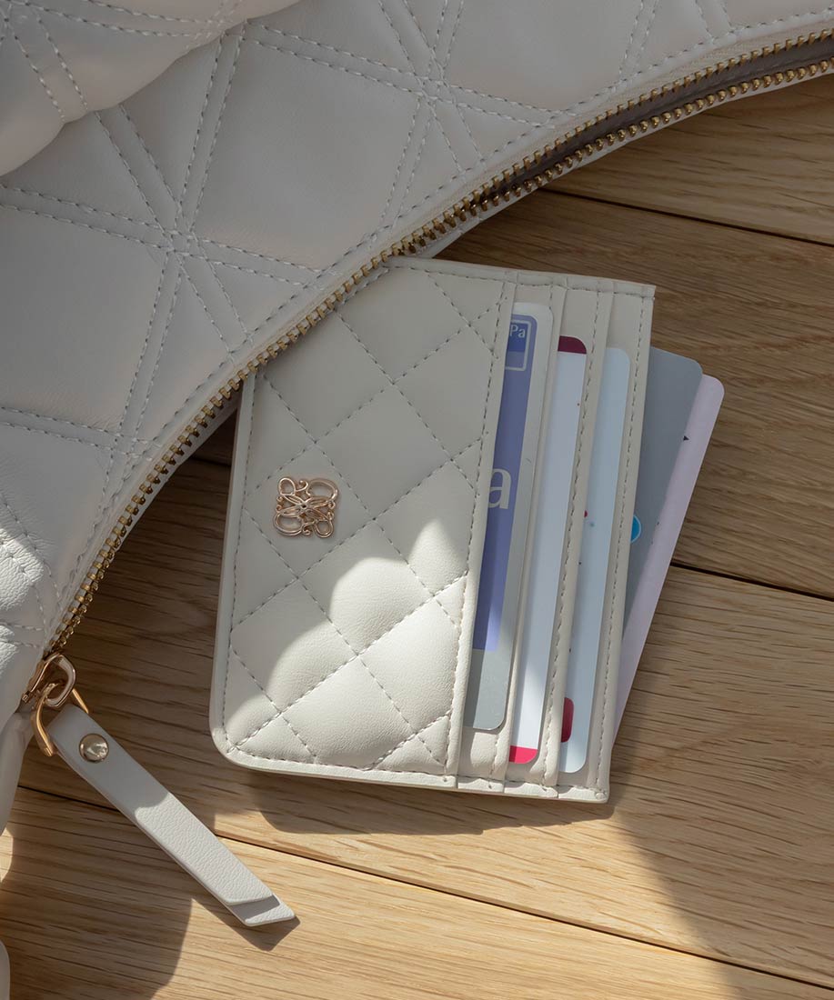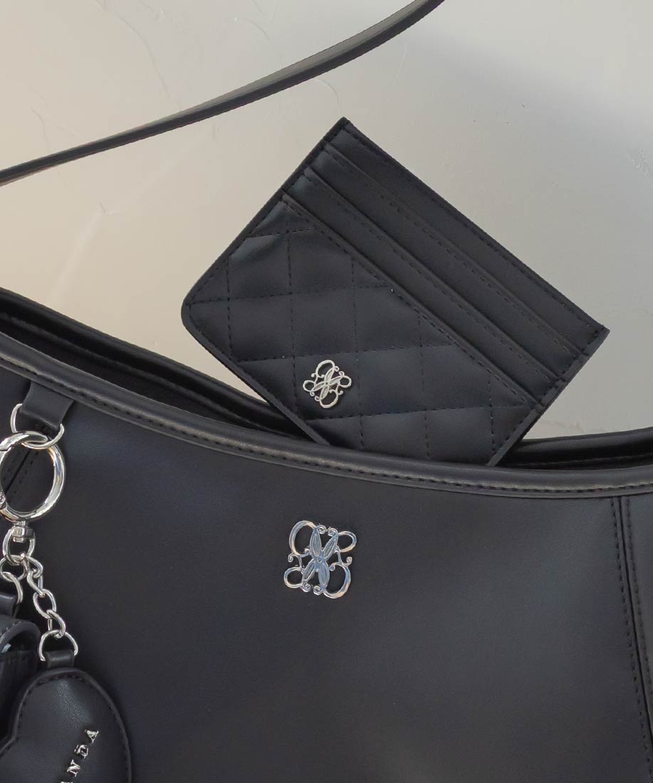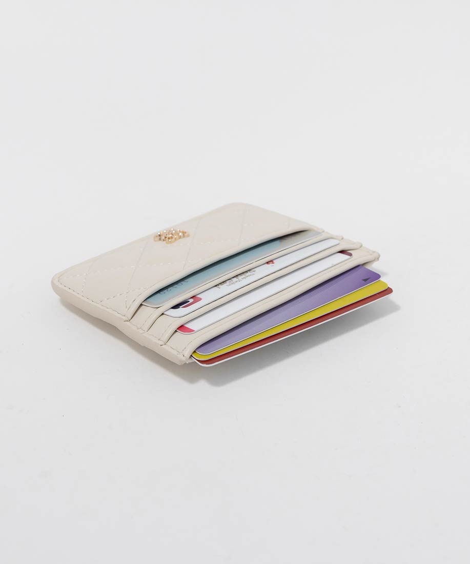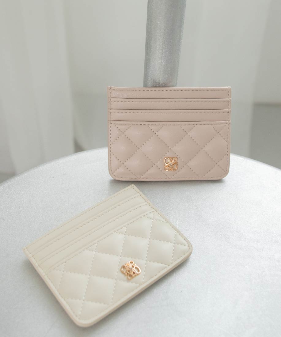キルティング生地にモノグラムパーツが映える上品な印象のカードケース。