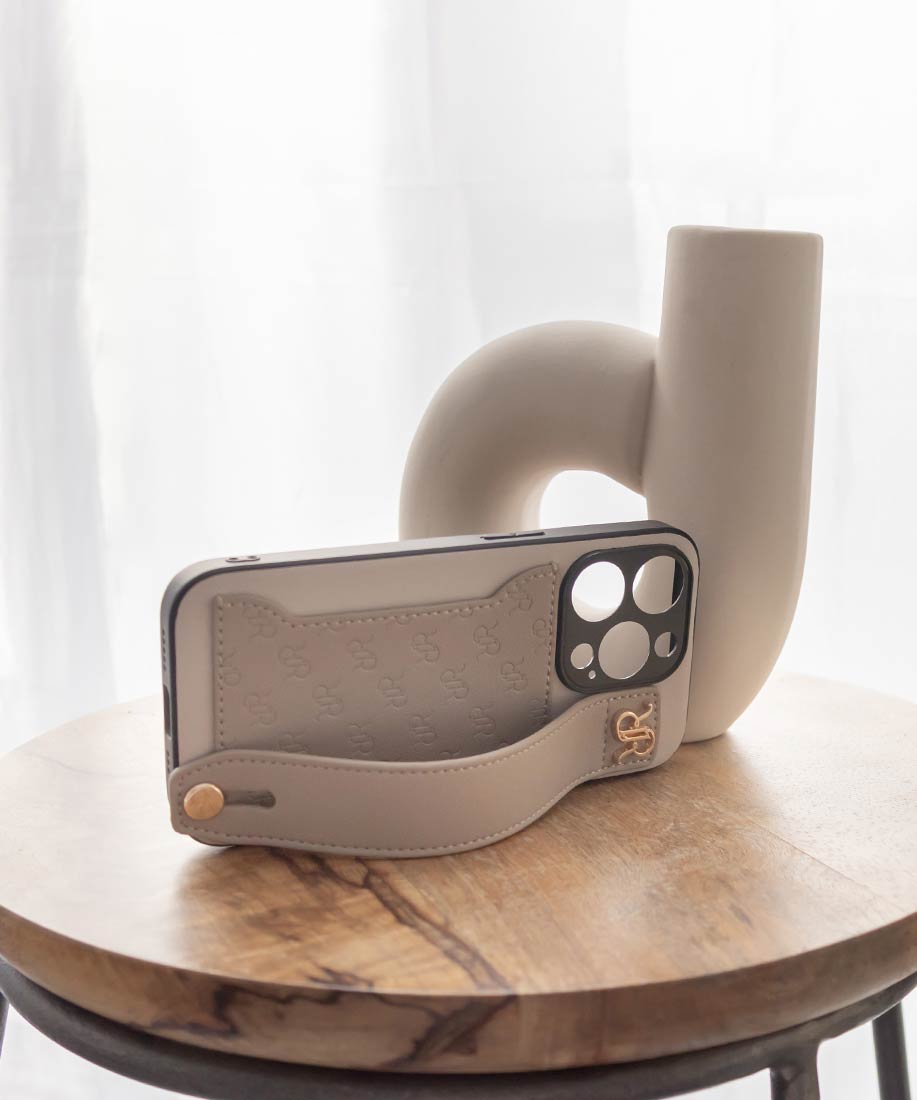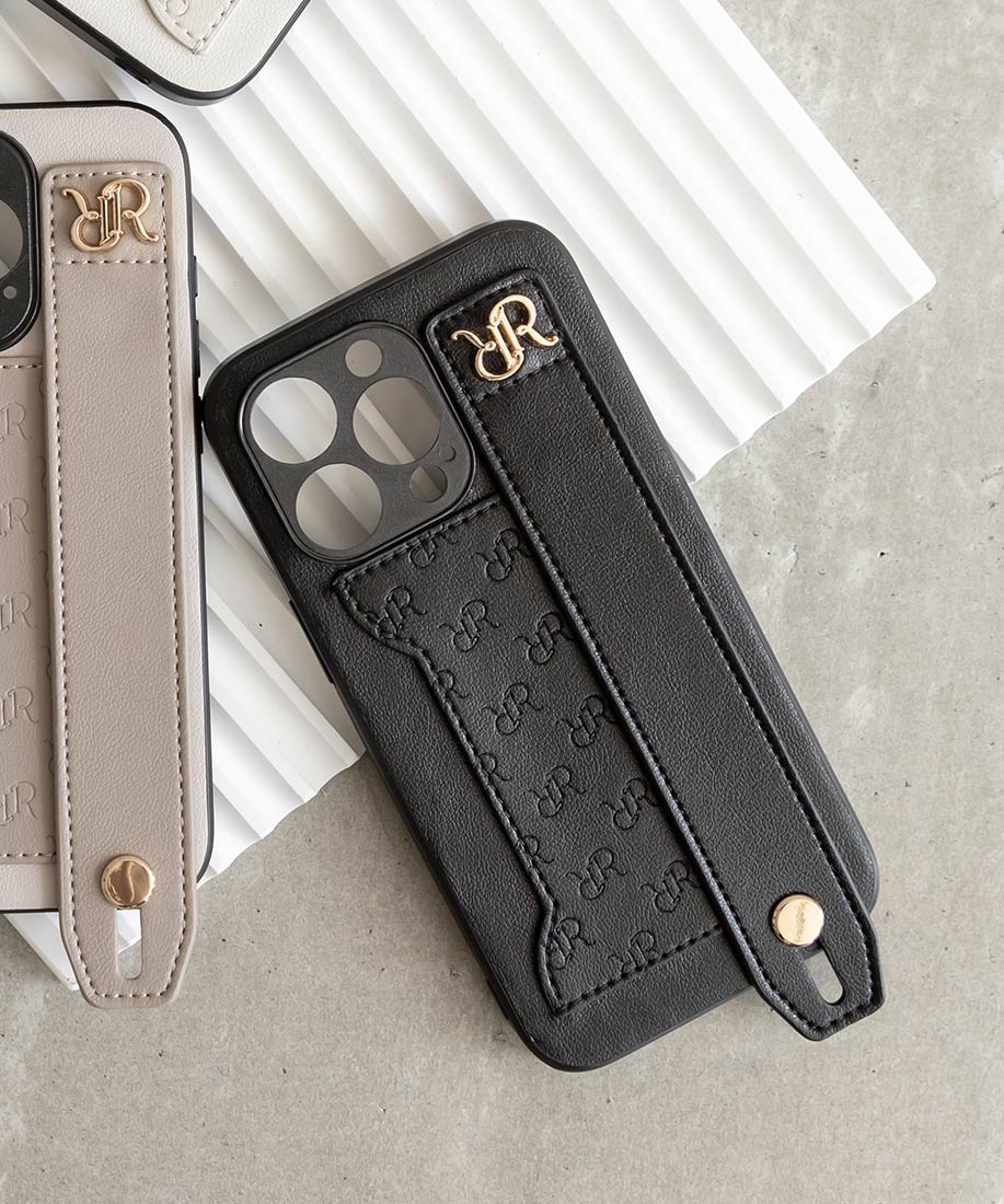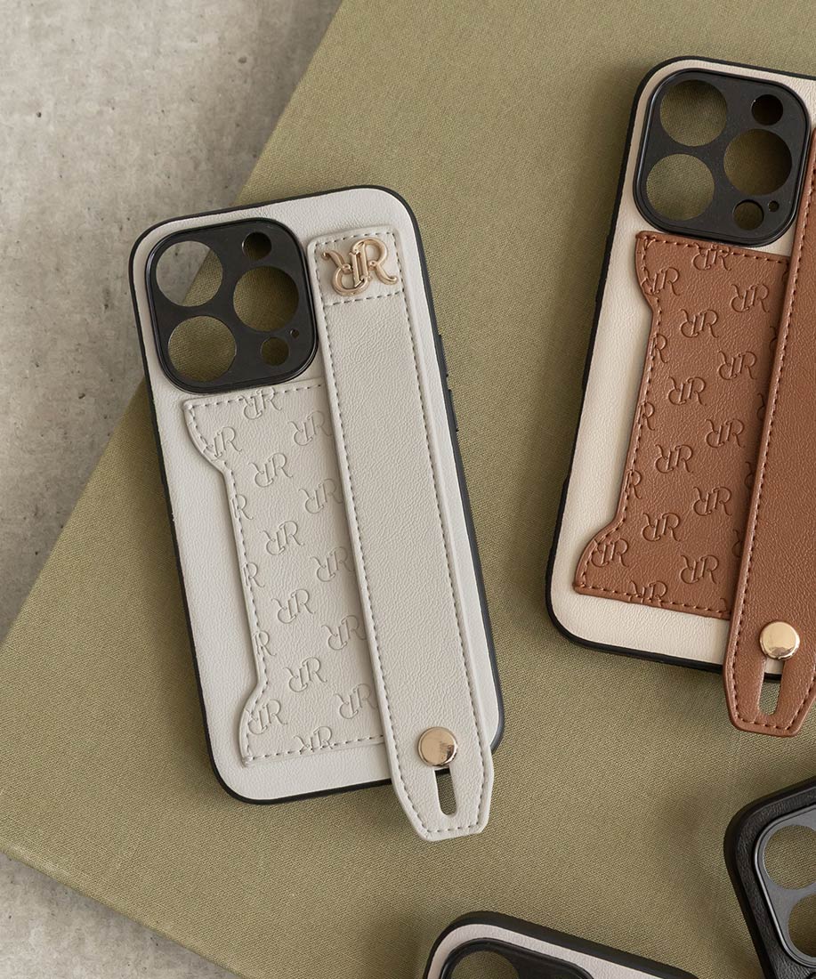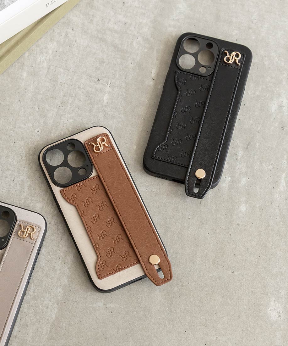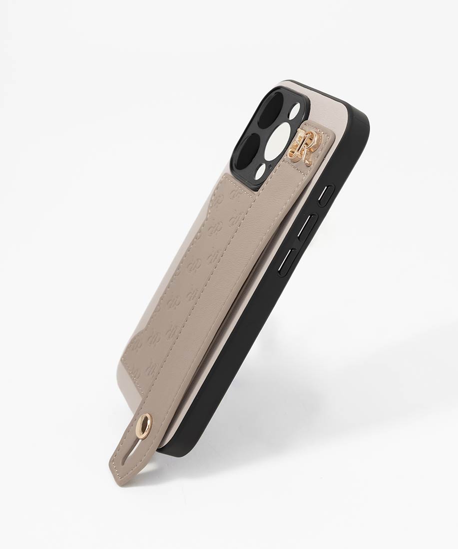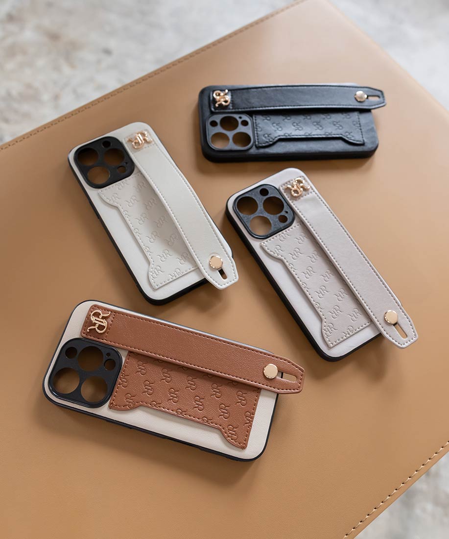 モノグラムデザインがポイントのベルト付きスマートフォンケース。