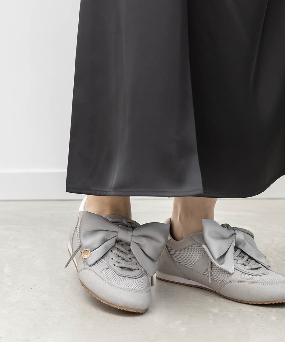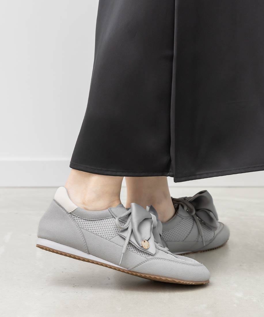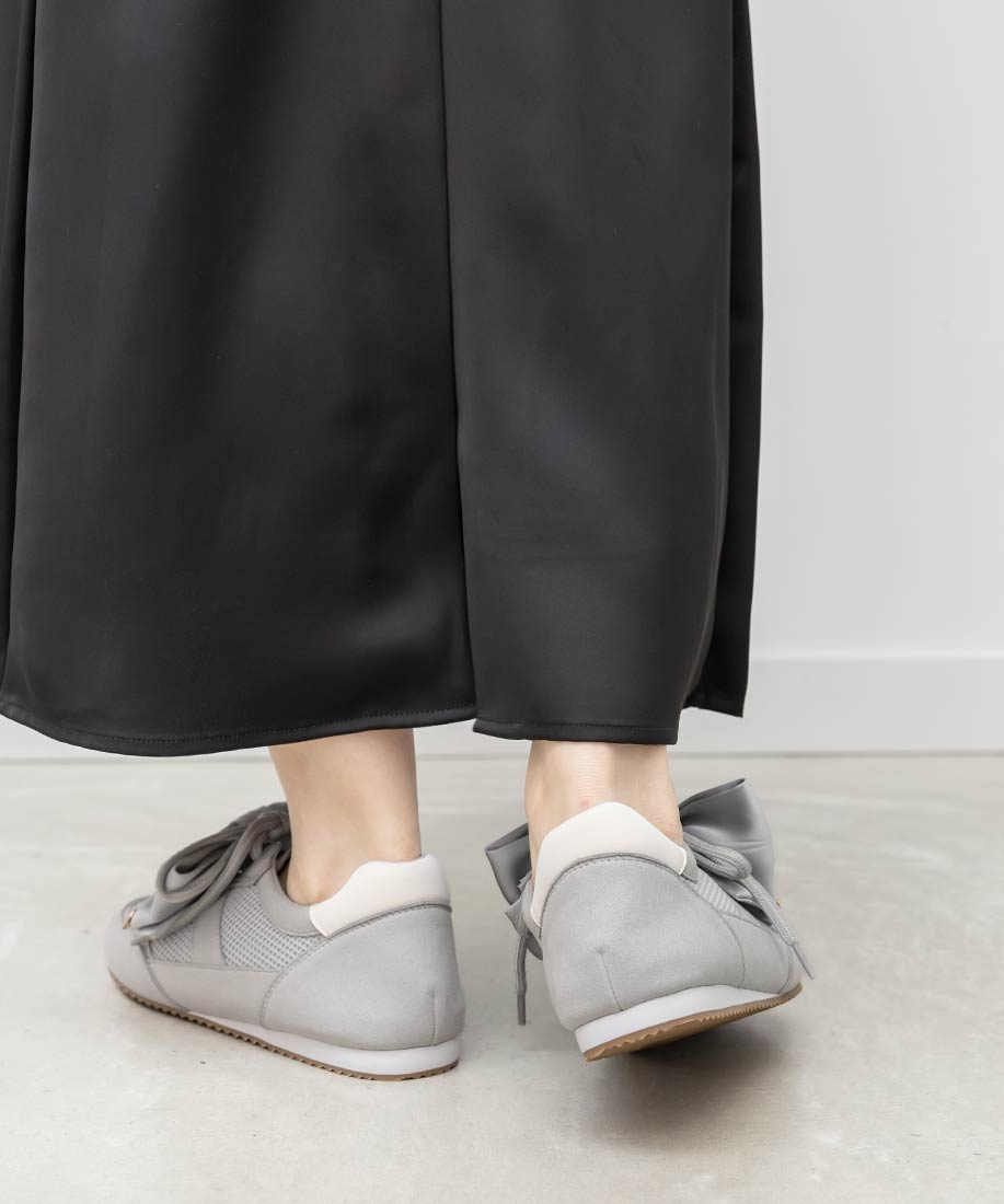 アイボリー⇒チュール生地、合成皮革(スムース)、スエード生地グレー ・ブラック⇒チュール生地、スエード生地