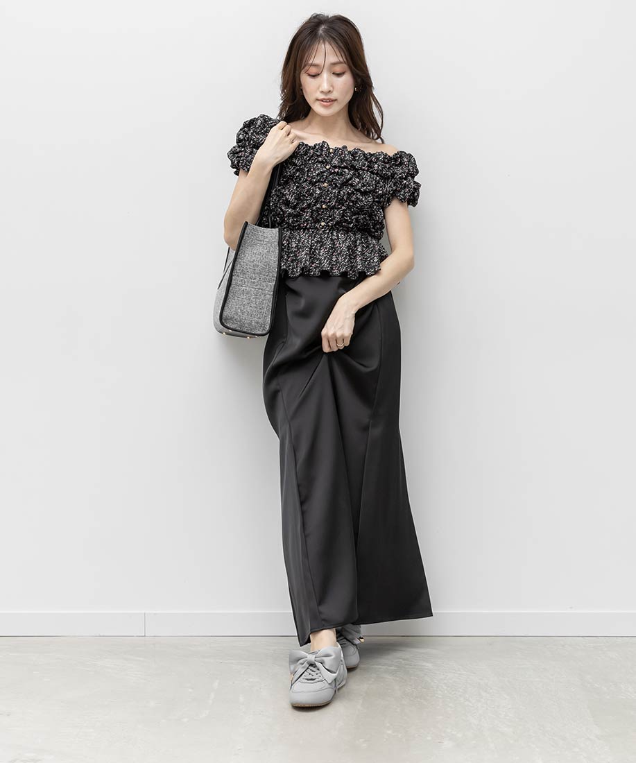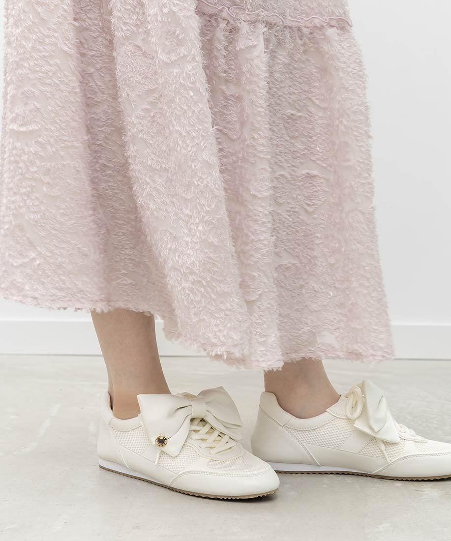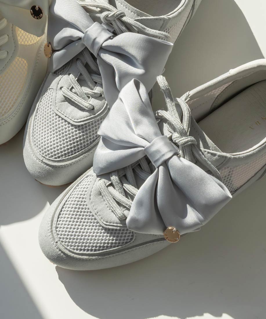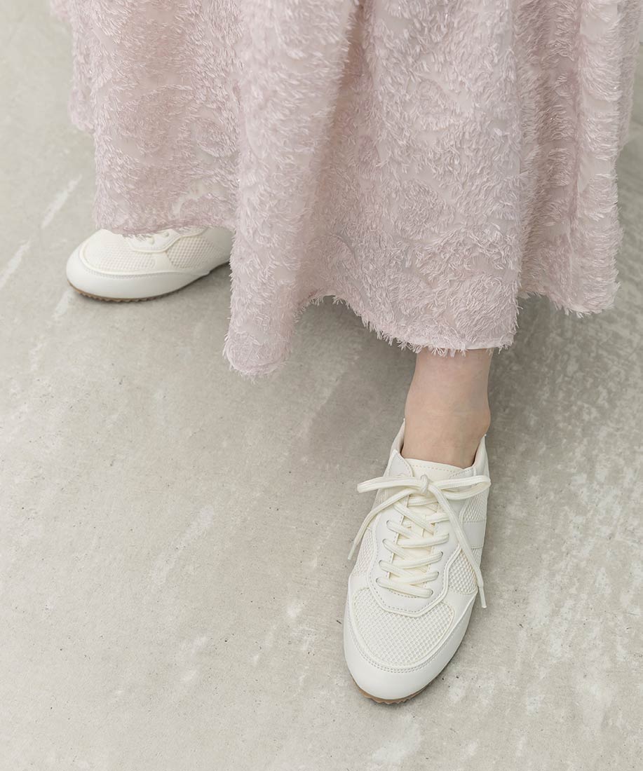 アイボリー⇒チュール生地、合成皮革(スムース)、スエード生地グレー ・ブラック⇒チュール生地、スエード生地
