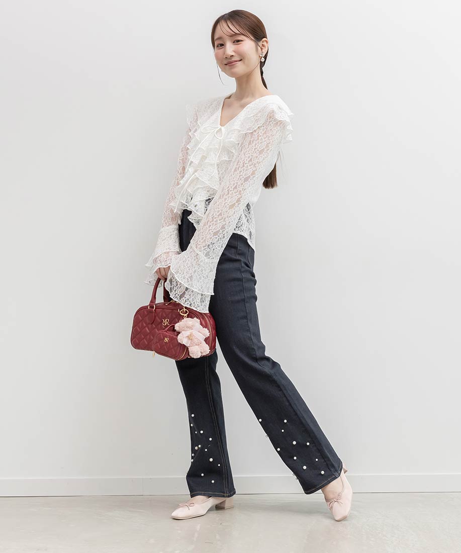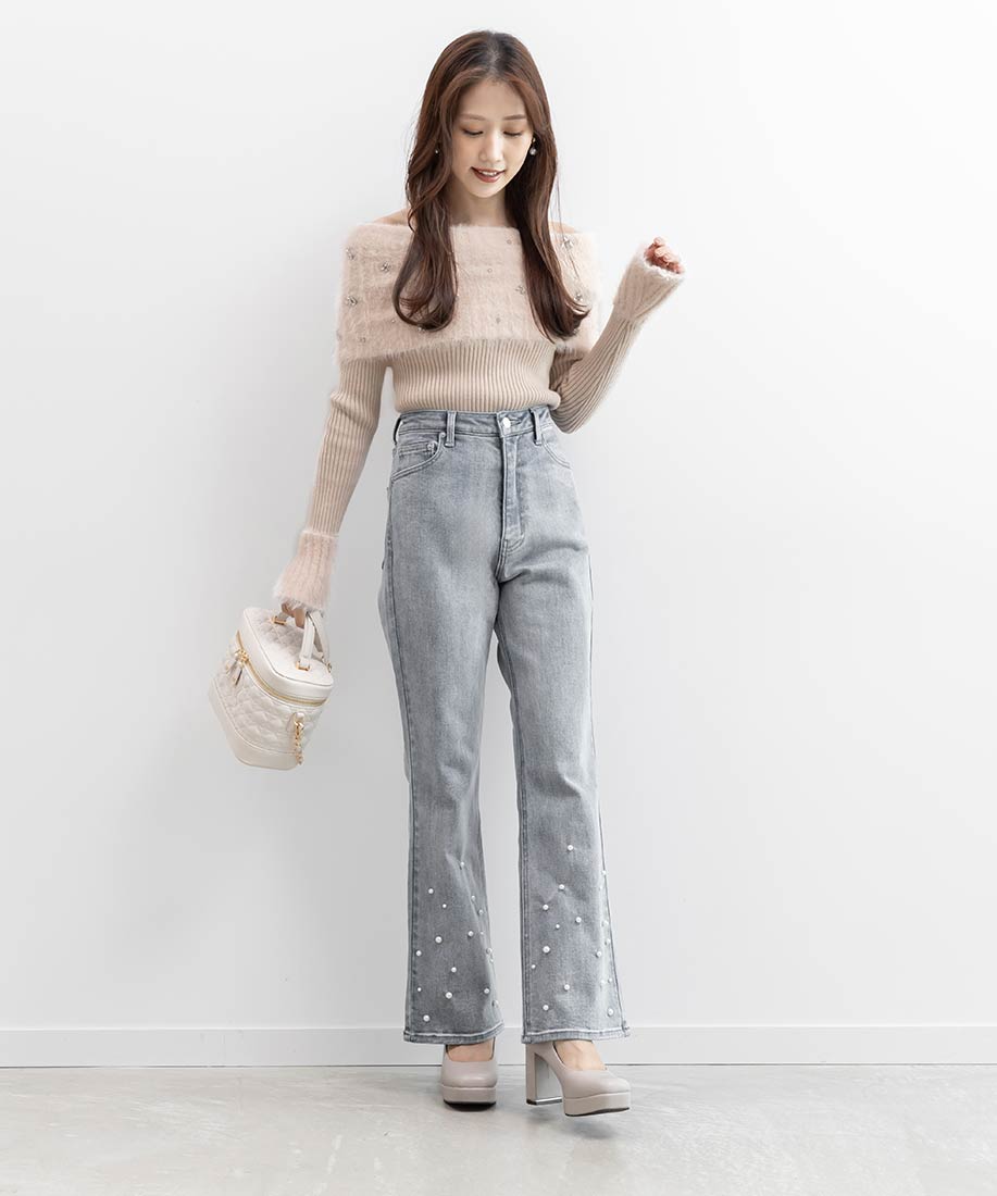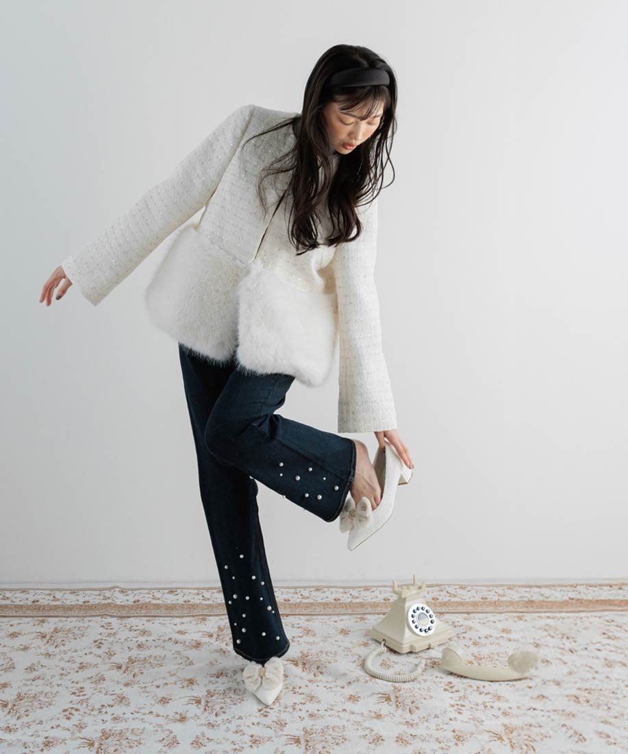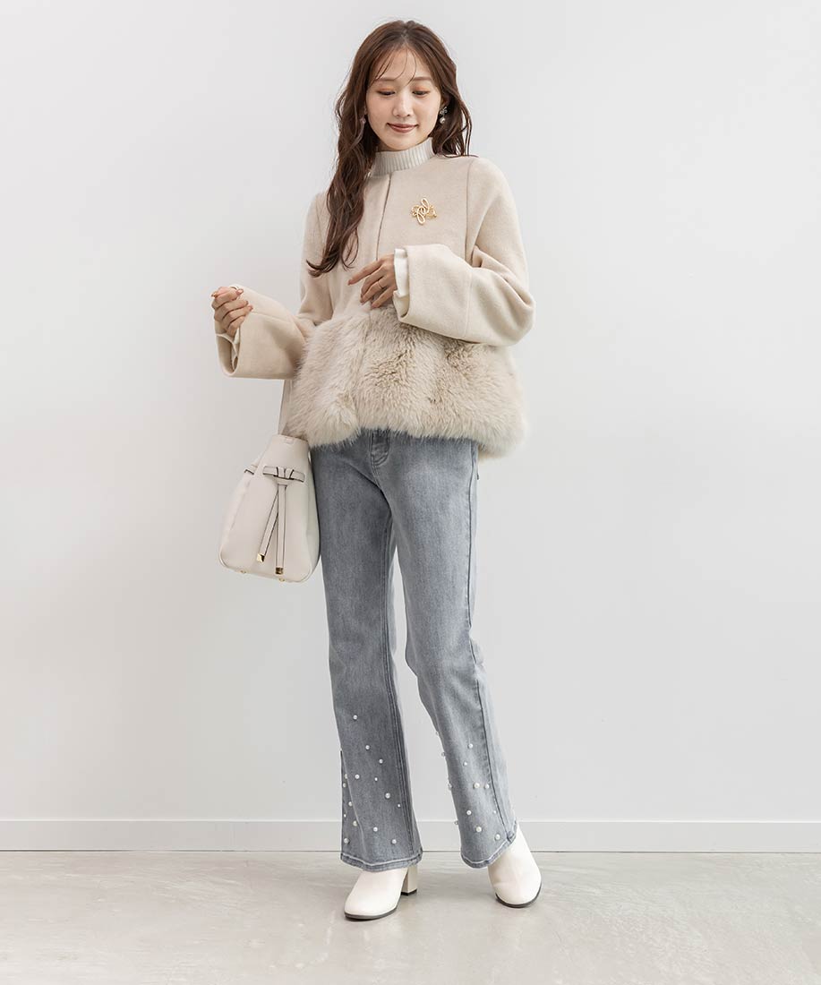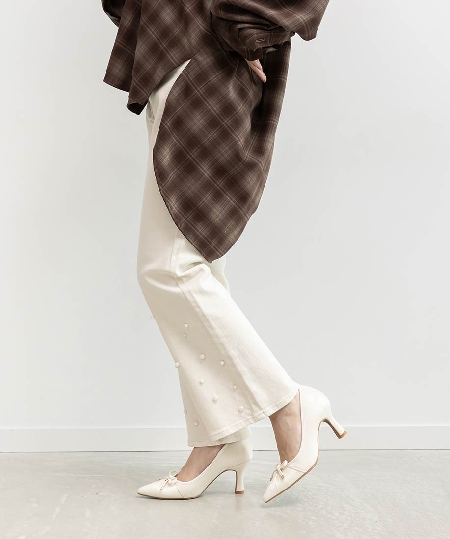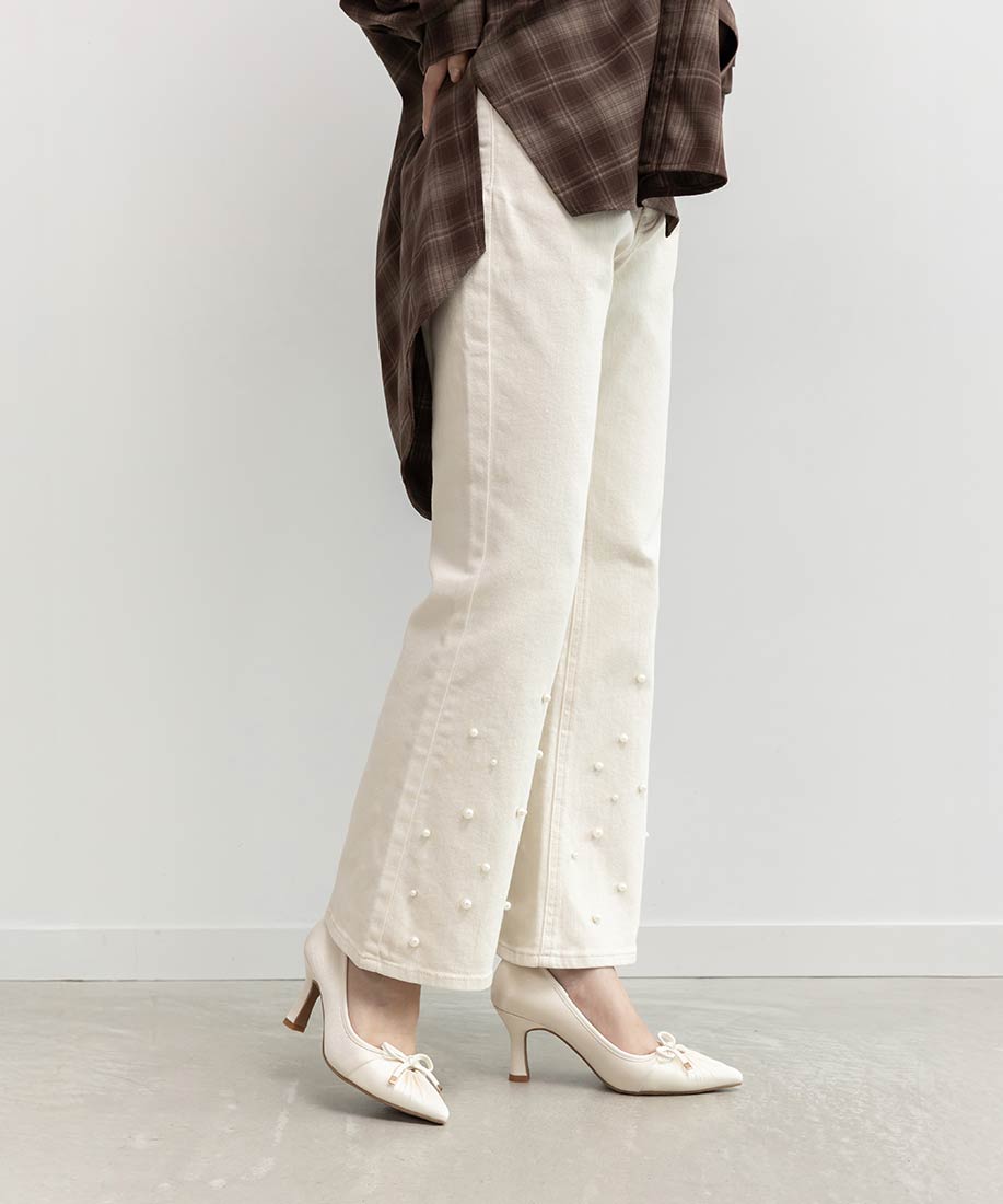パールがフェミニンさをプラスしてくれるのでカジュアルになりすぎず、こなれた印象へと導いてくれます。