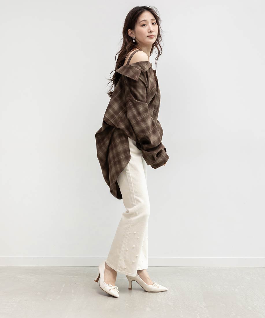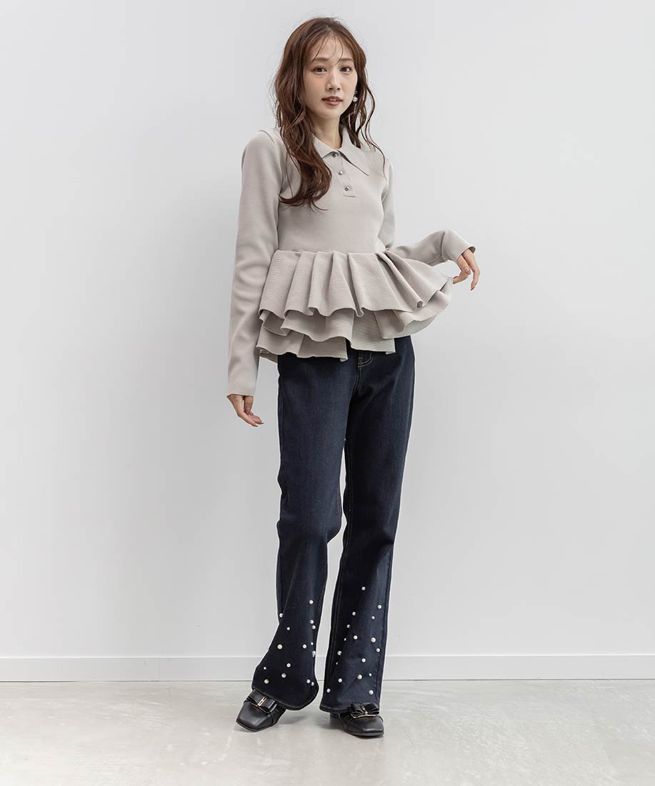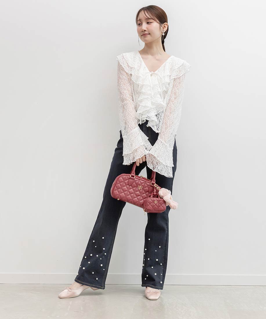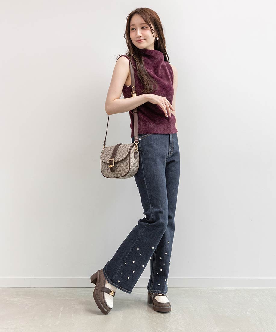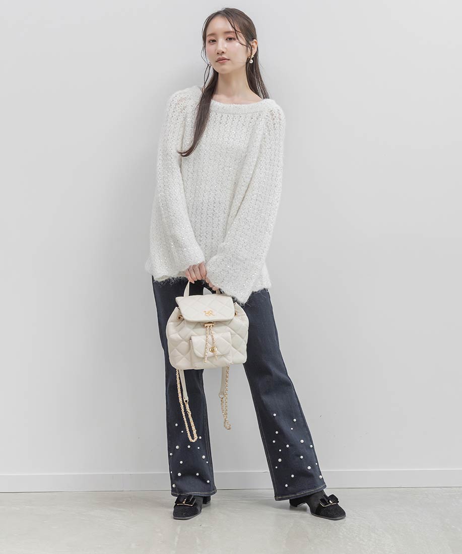 パールがフェミニンさをプラスしてくれるのでカジュアルになりすぎず、こなれた印象へと導いてくれます。