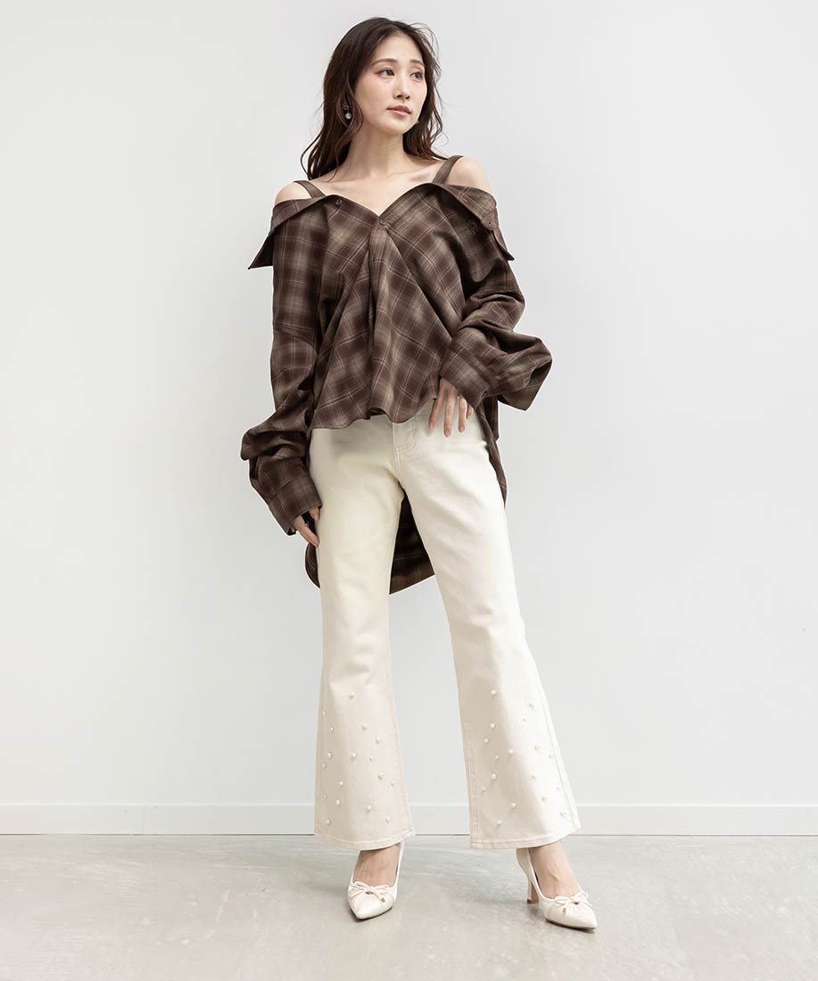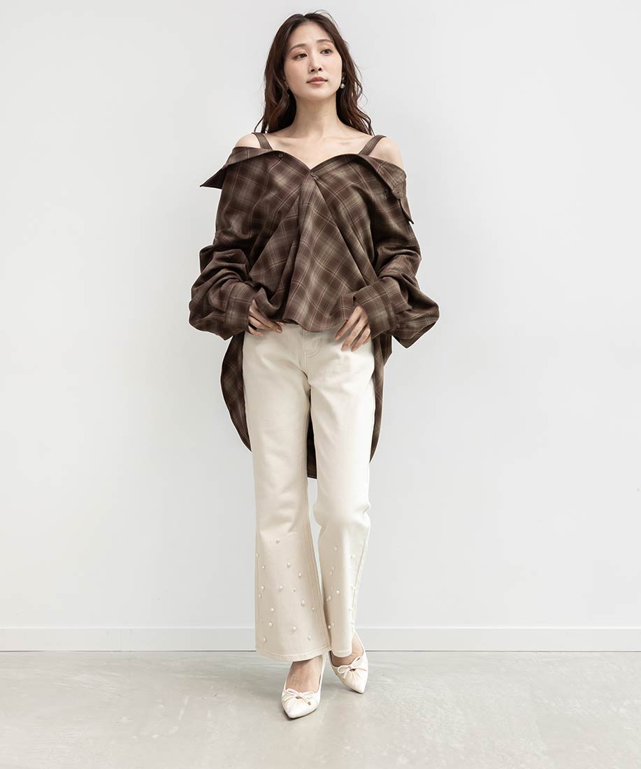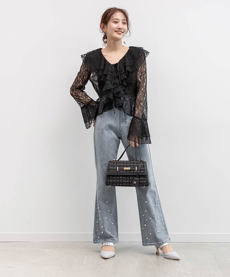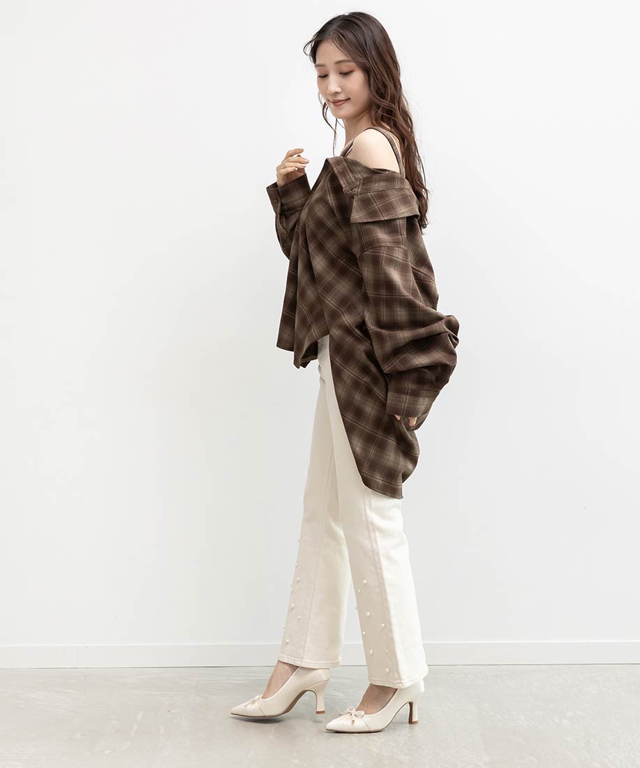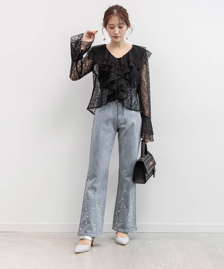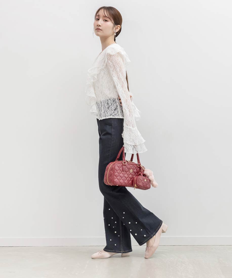 パールがフェミニンさをプラスしてくれるのでカジュアルになりすぎず、こなれた印象へと導いてくれます。