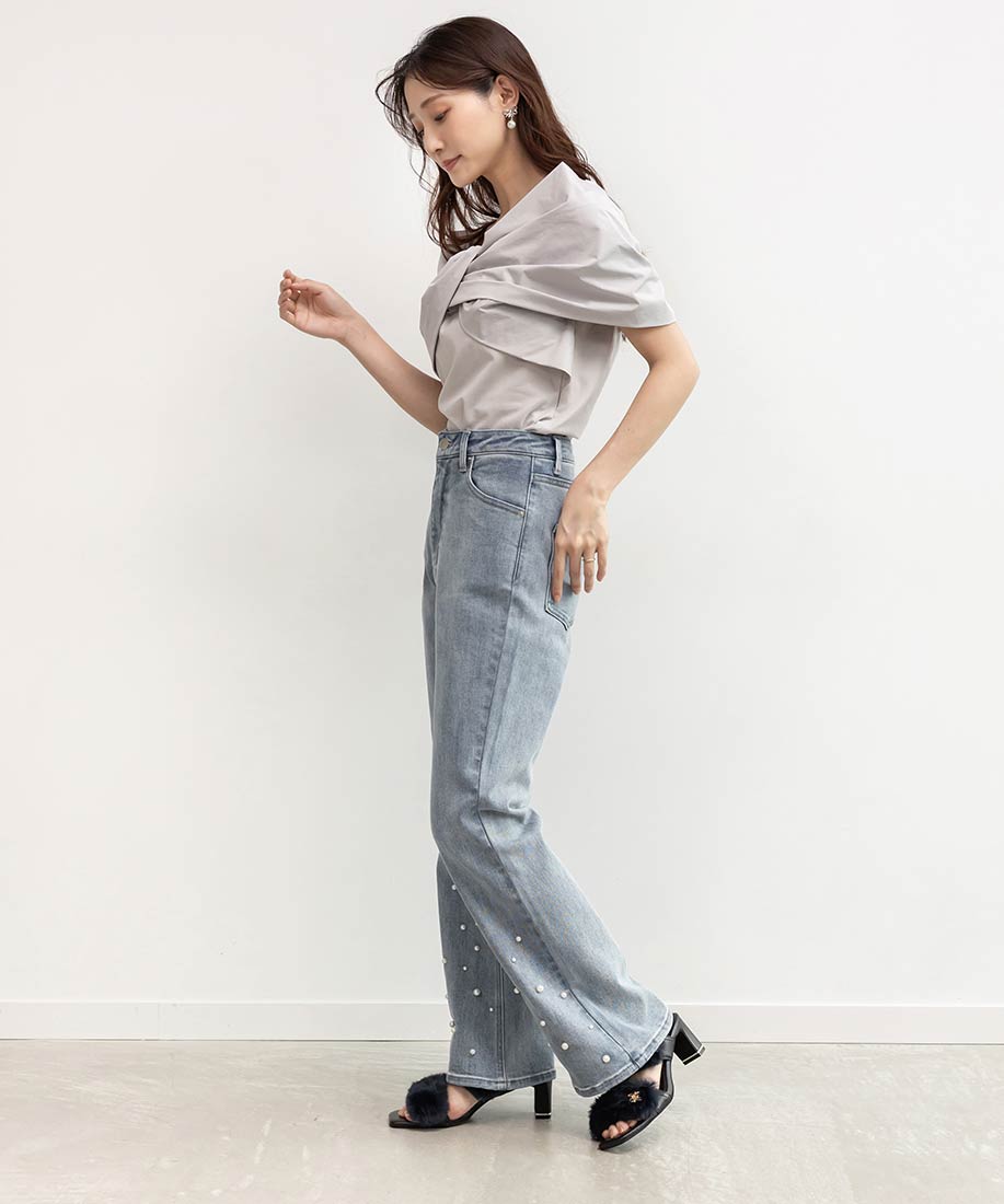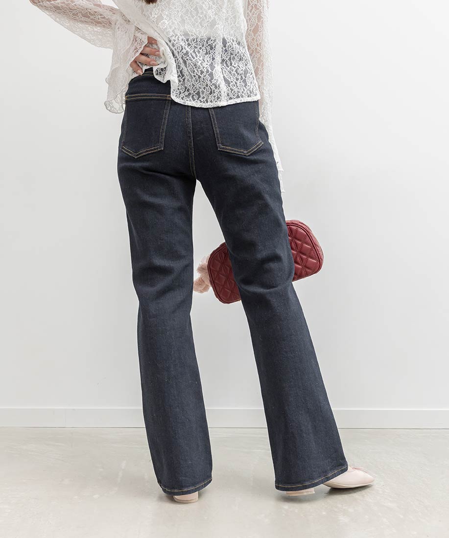 シルエットにとことんこだわり、スタイルアップ効果抜群のフレアデニムパンツ。