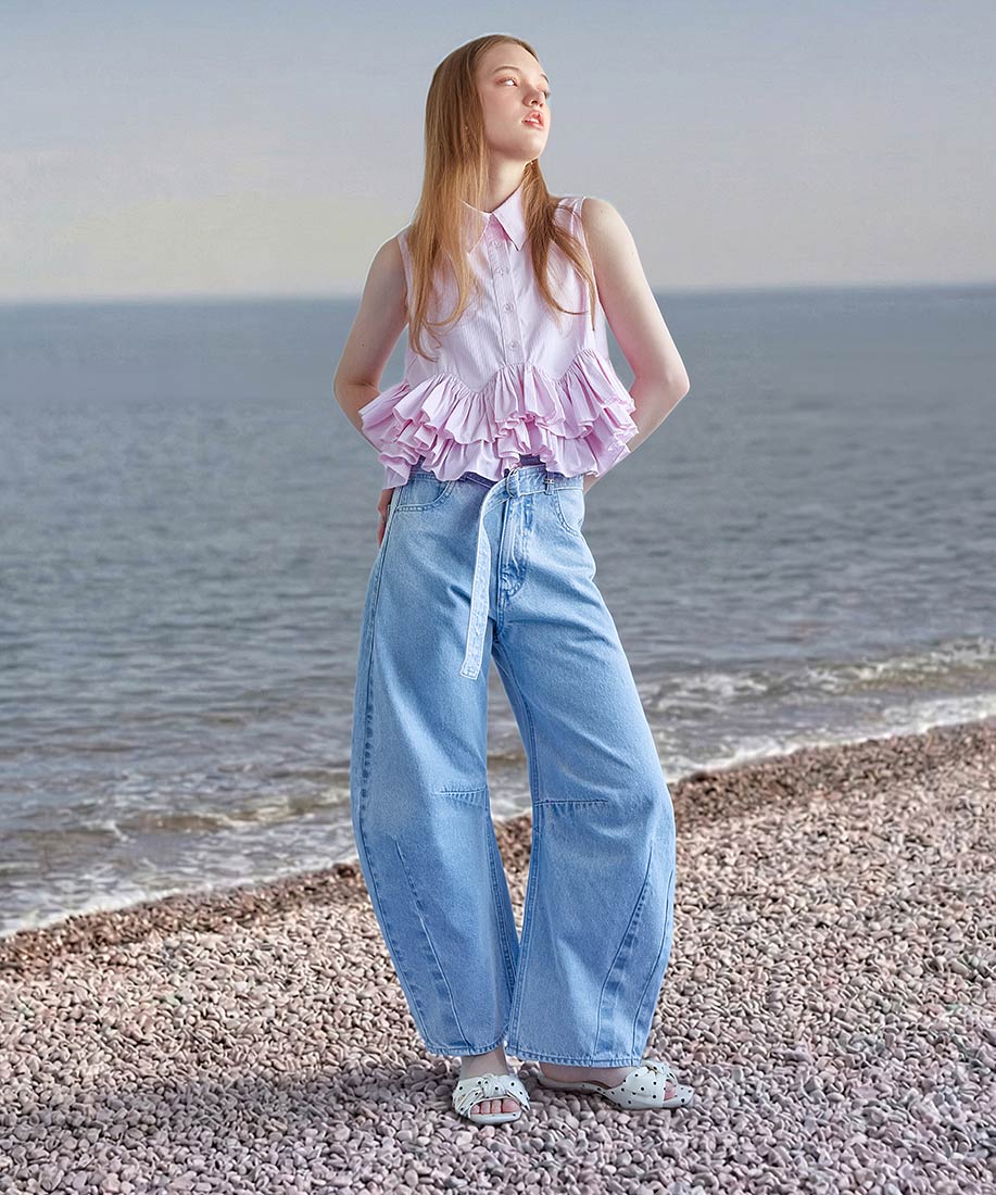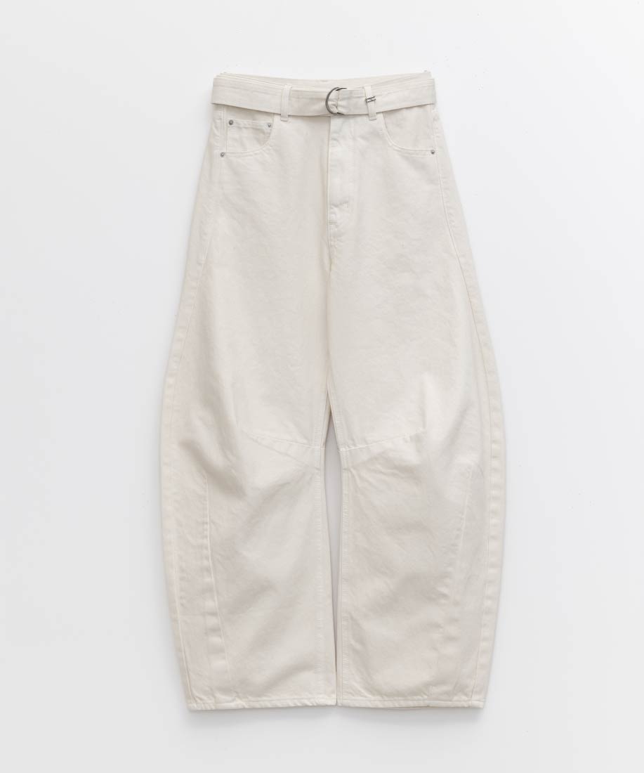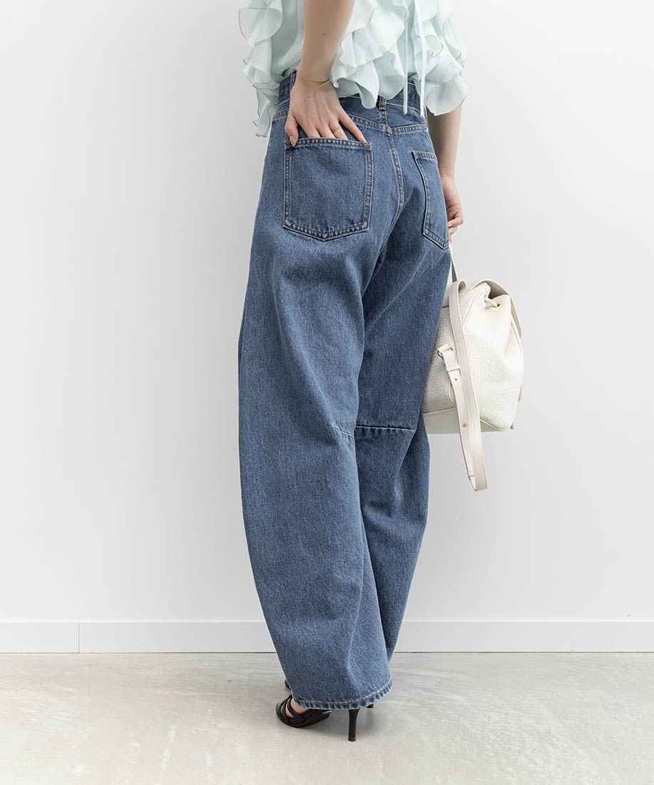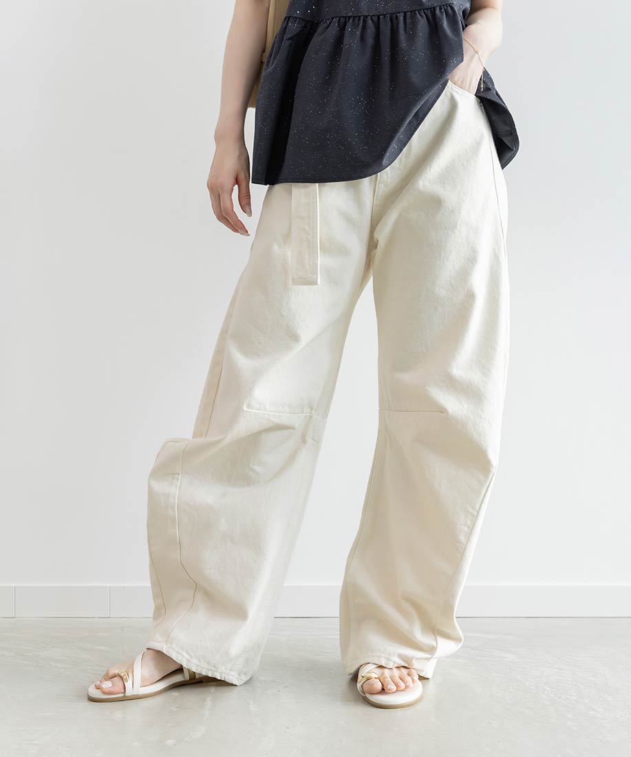 スタイルアップにこだわったワイドシルエットのバレルレッグパンツ。