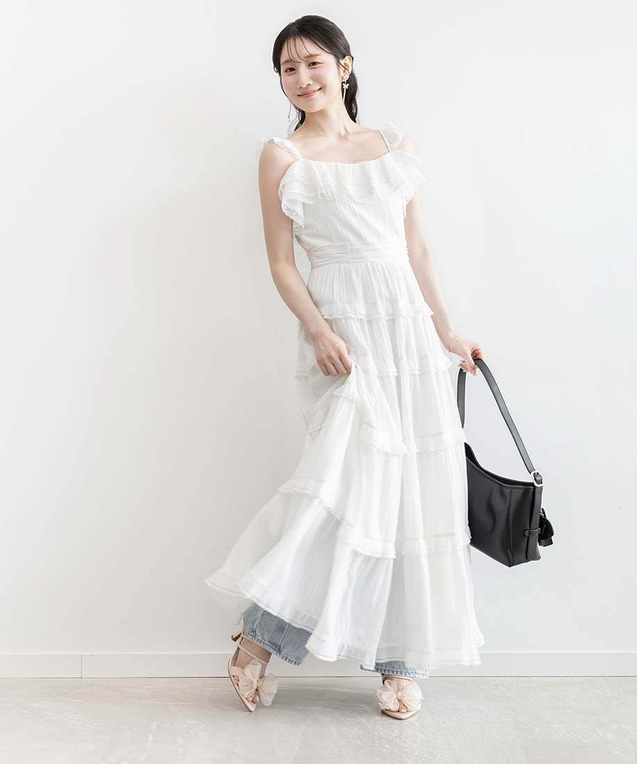 ニットやブラウスをタックインしてメリハリを出したり、ショート丈トップスと合わせて脚長効果を意識したスタイリングがおすすめです。
