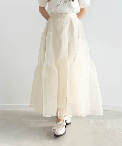 【SALE】ケミカルレースミモレ丈スカート