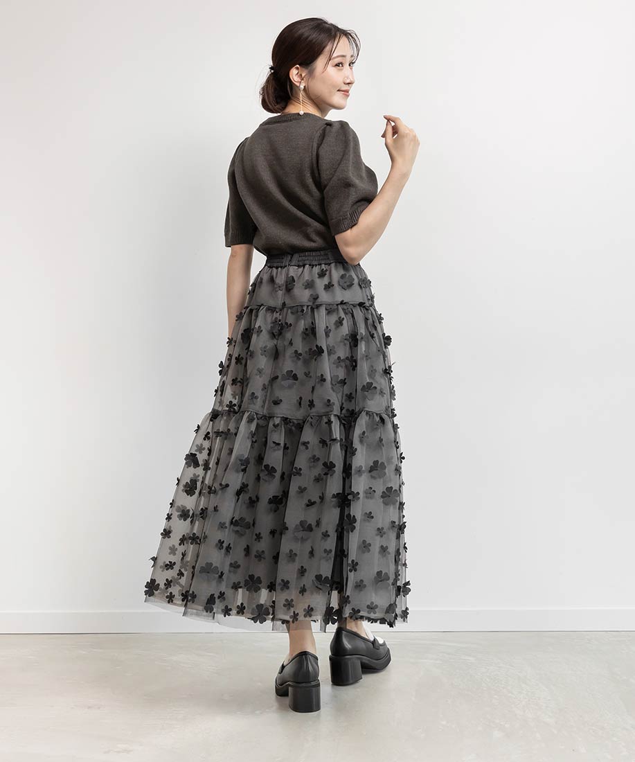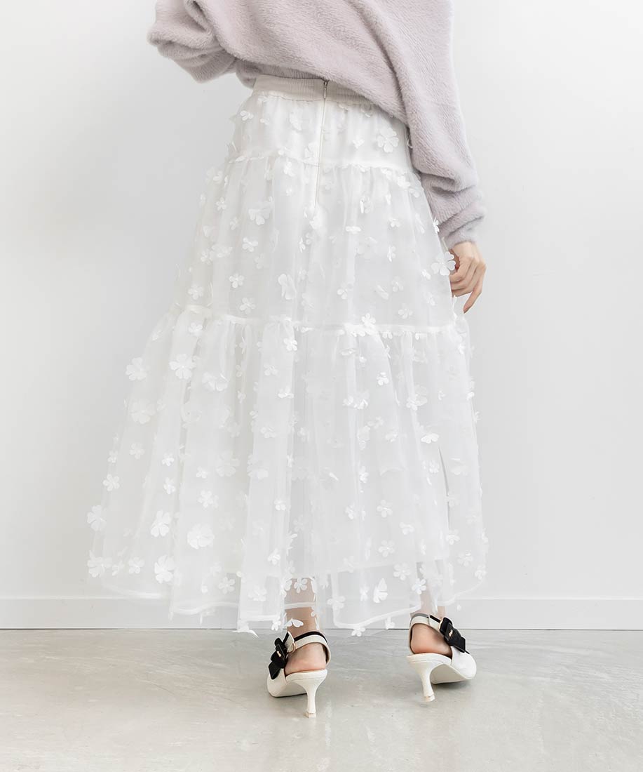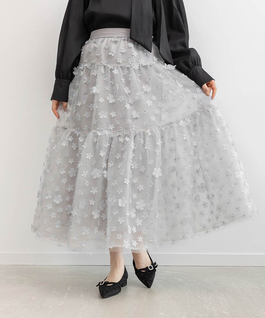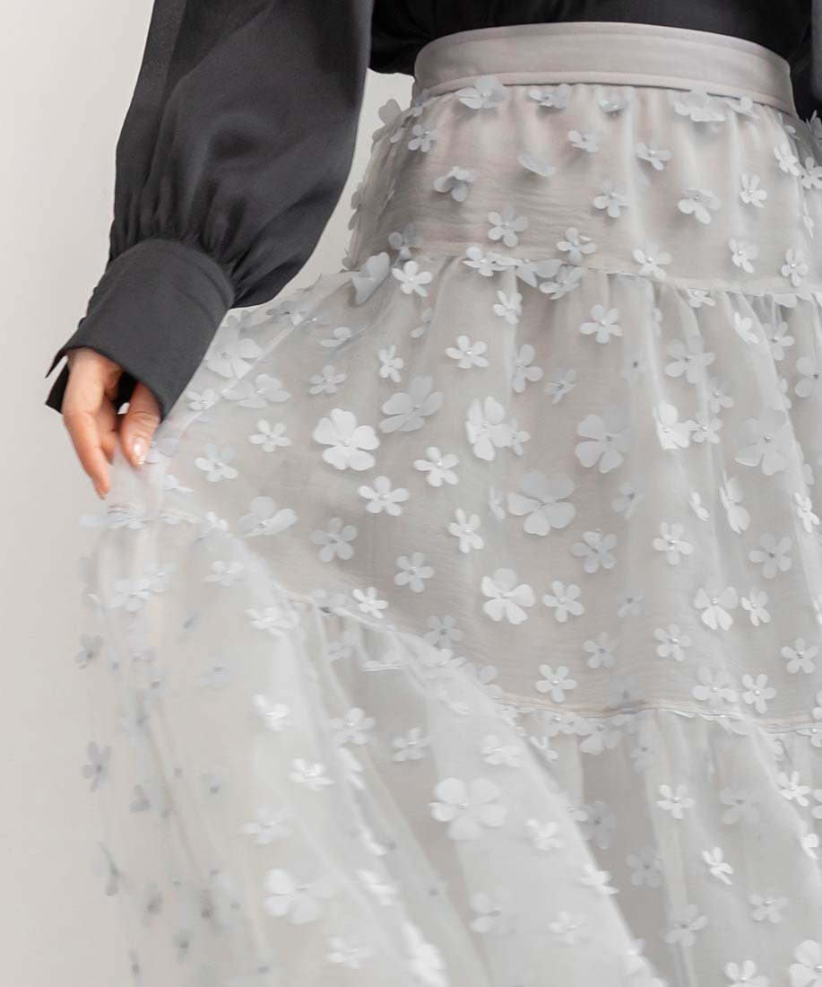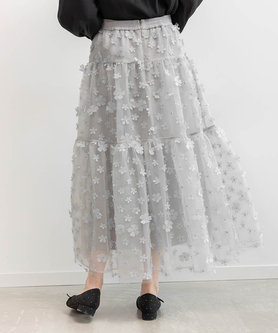 3Dフラワーティアードスカート