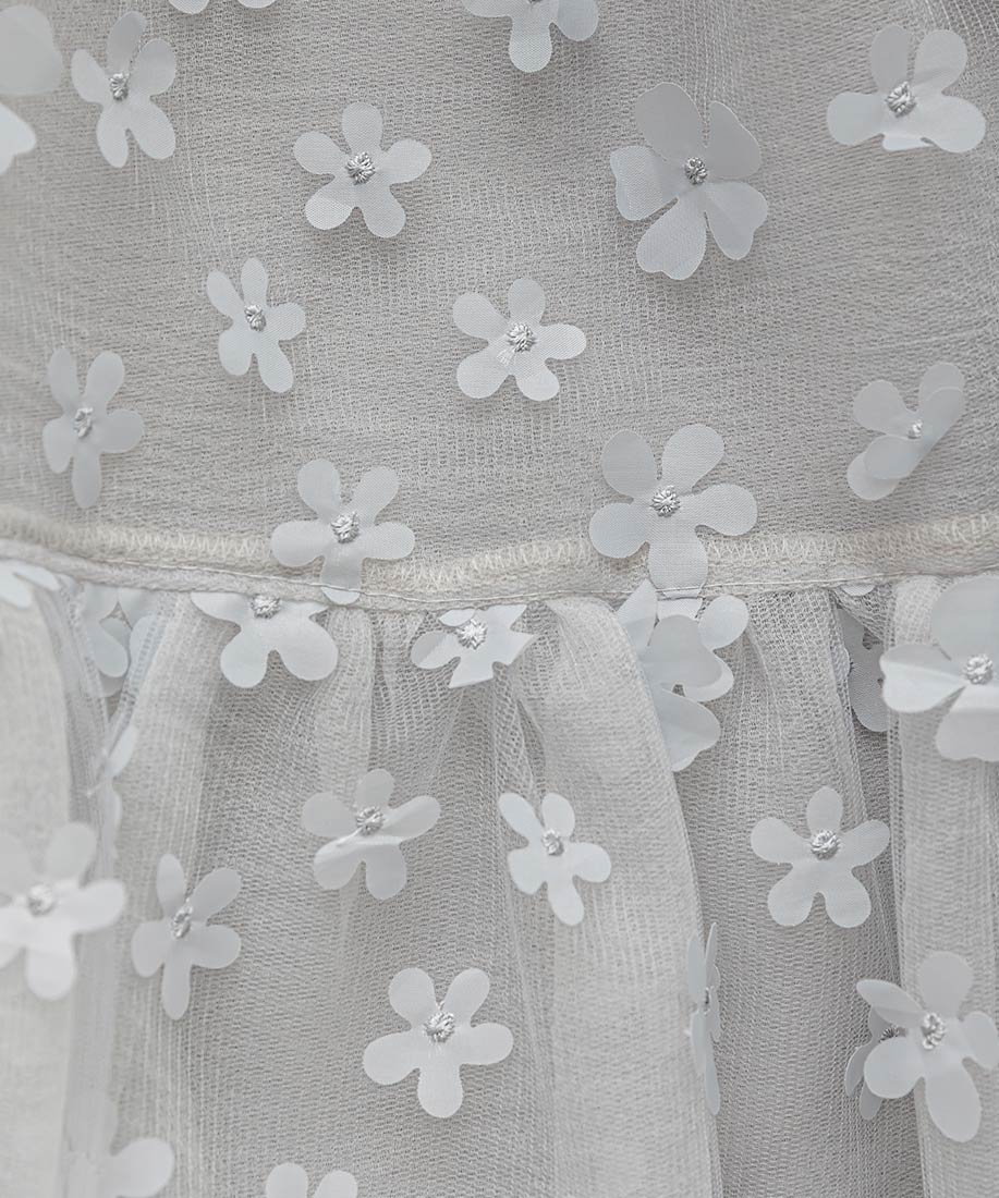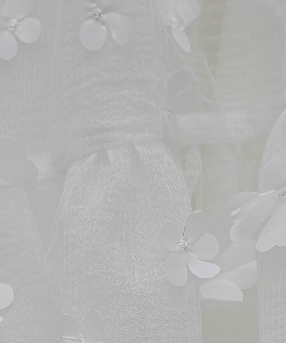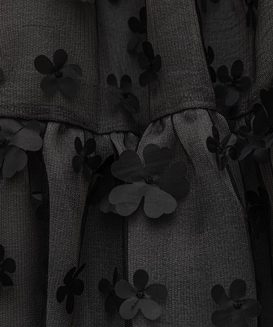 ・一番上の生地にはシアー感のある3Dフラワーが施された生地を使用