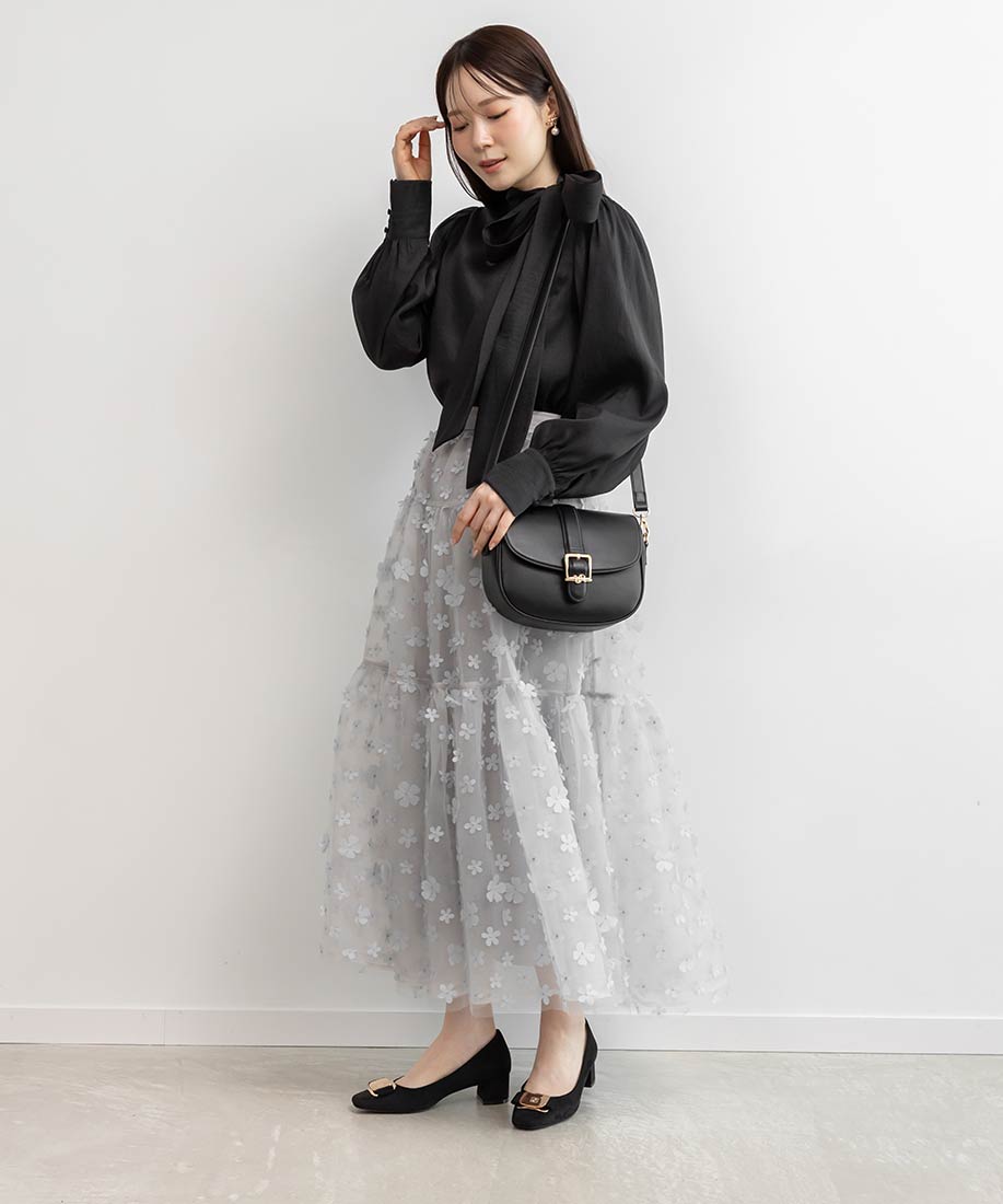 ふんわりとしたシルエットに立体感のある装飾で、フェミニンムードたっぷりなアイテムです。
