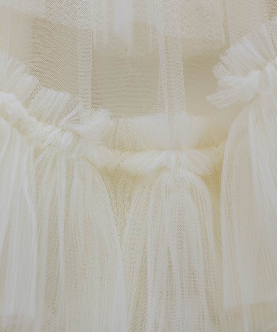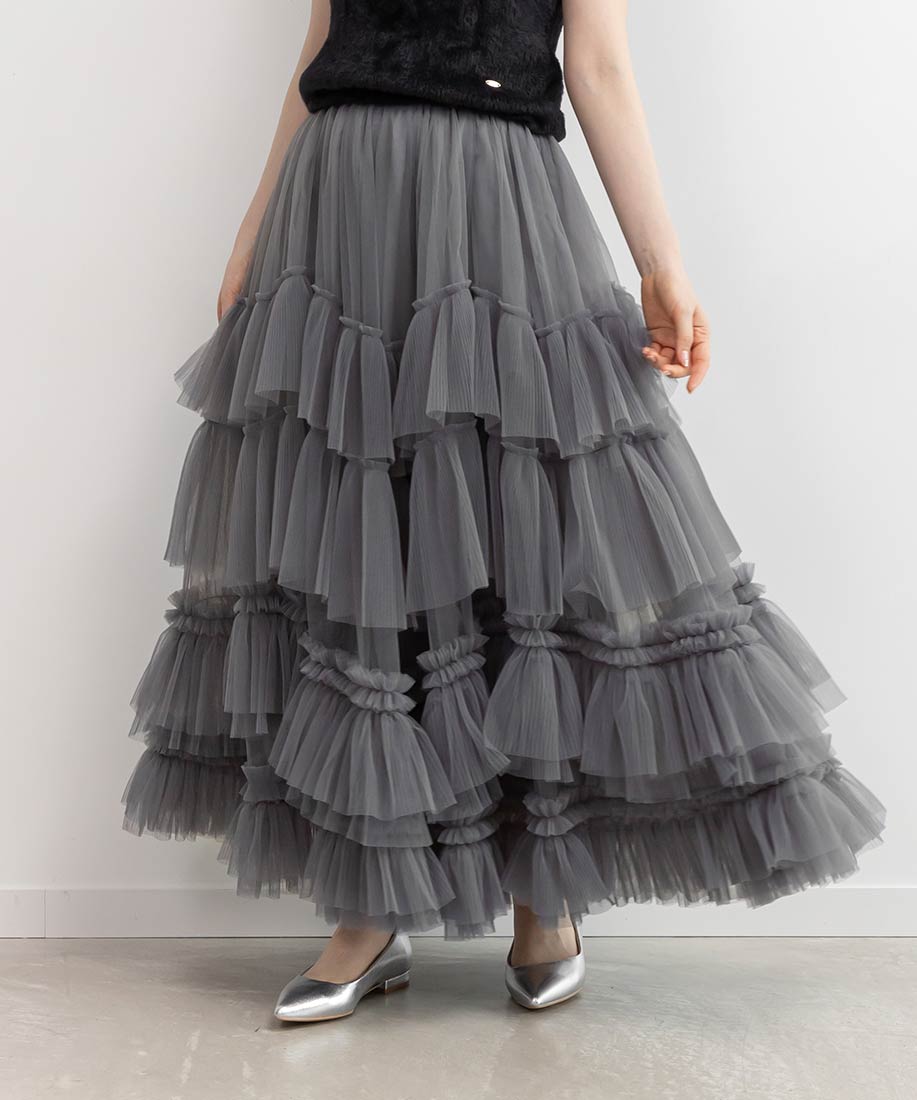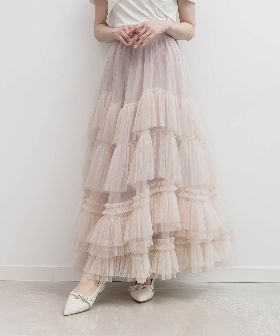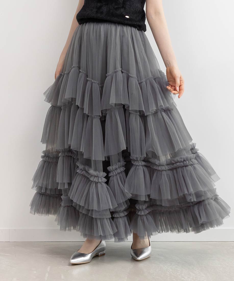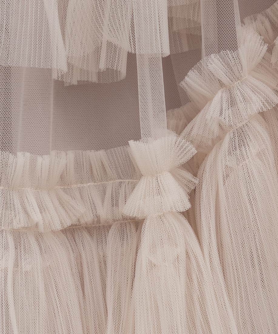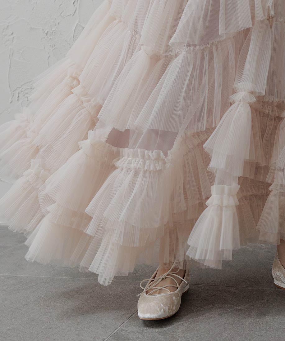 たっぷりと贅沢に施されたプリーツが繊細なチュールスカート。