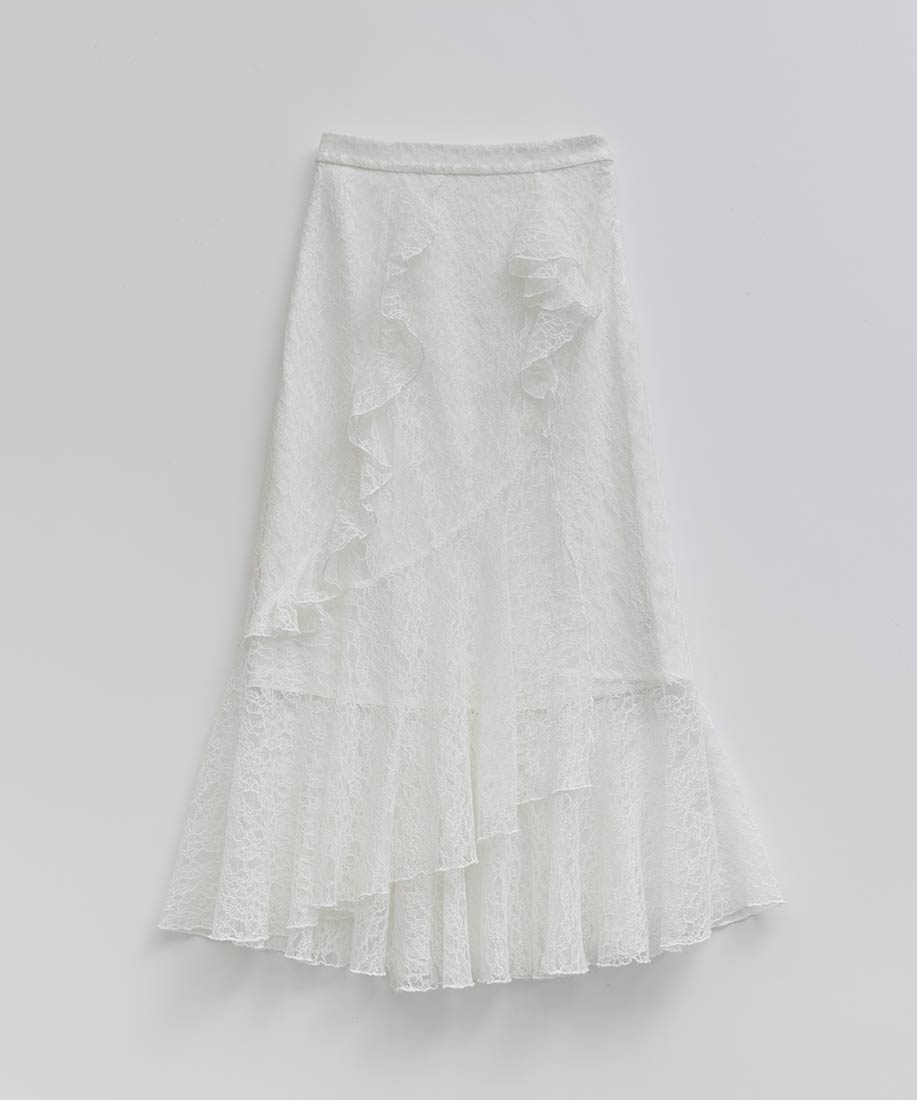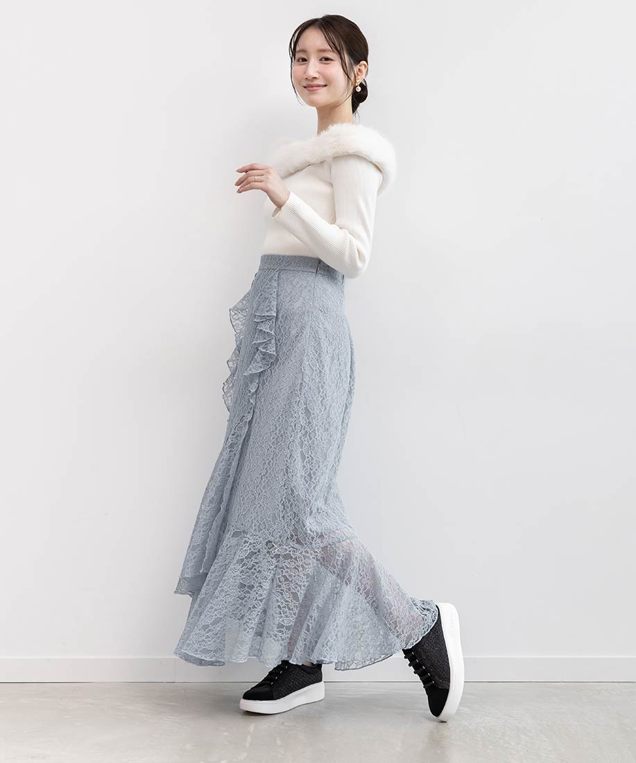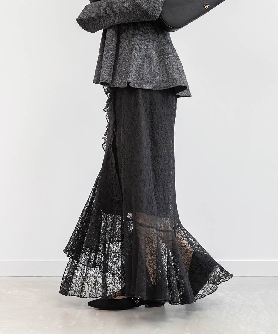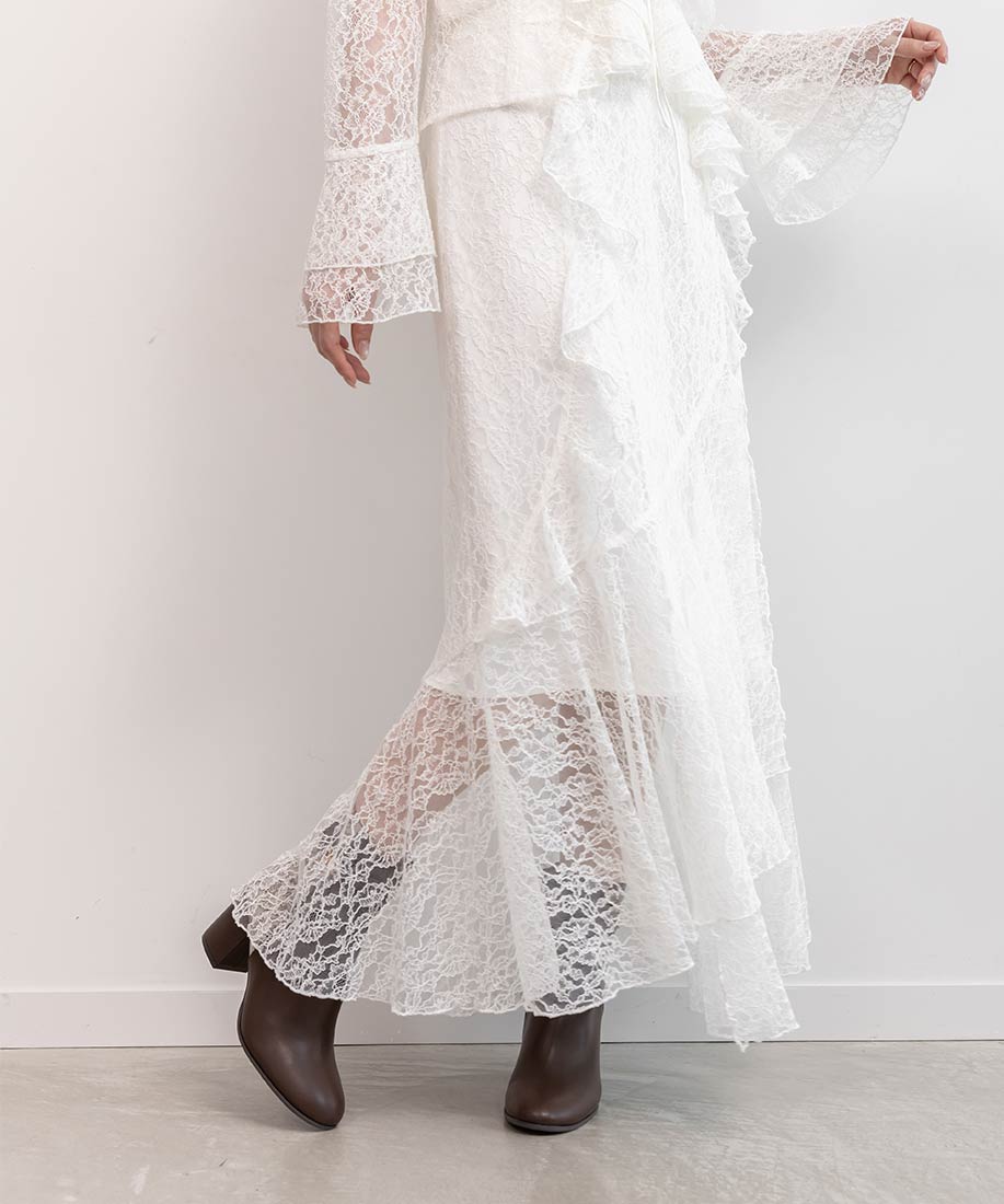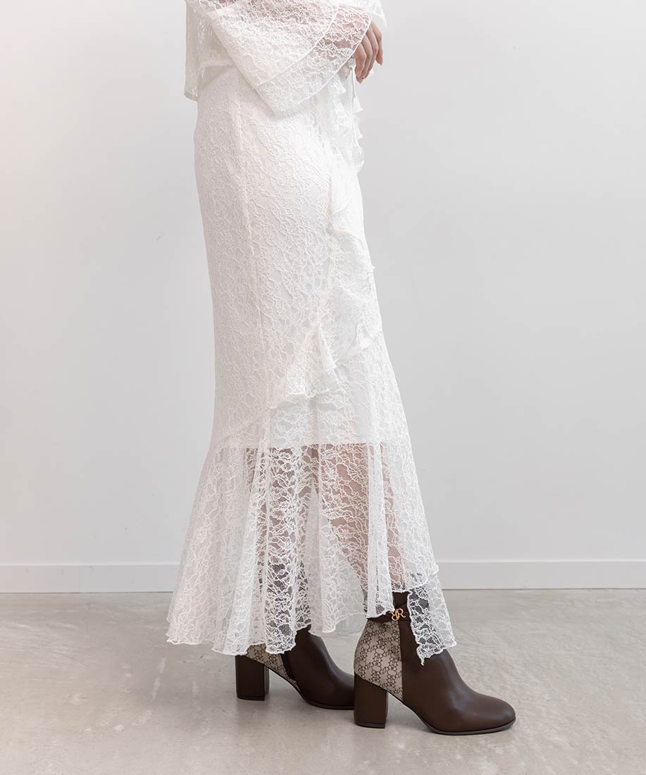 繊細なレースのラッフルデザインが目を惹く、マーメイドスカート。