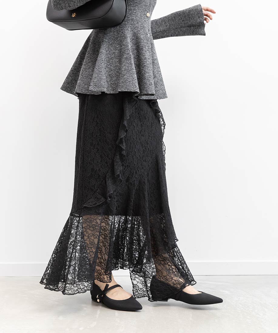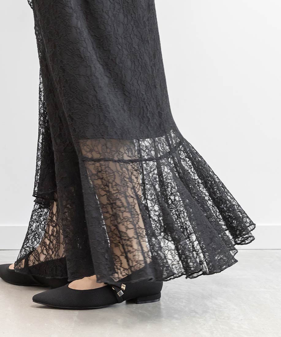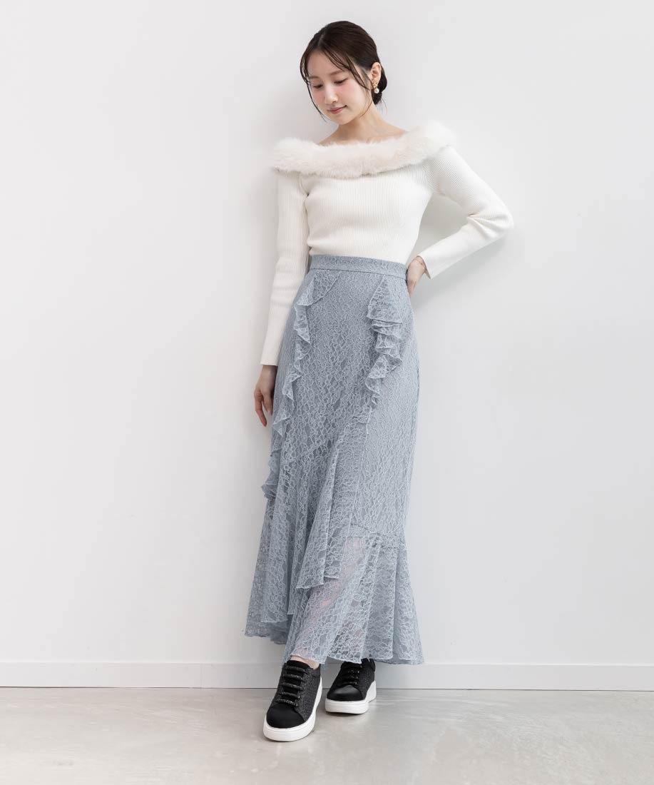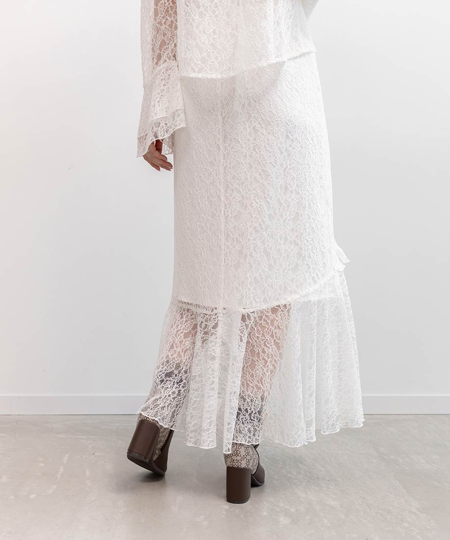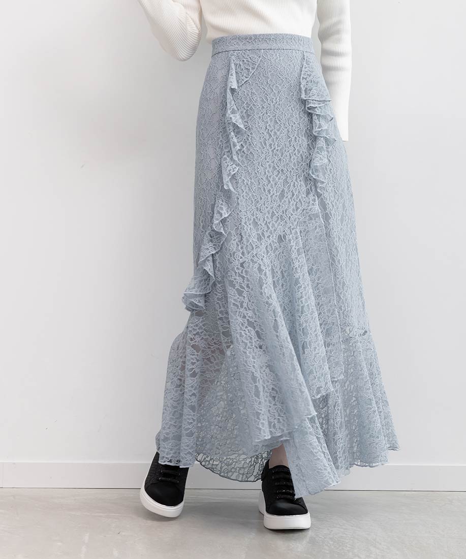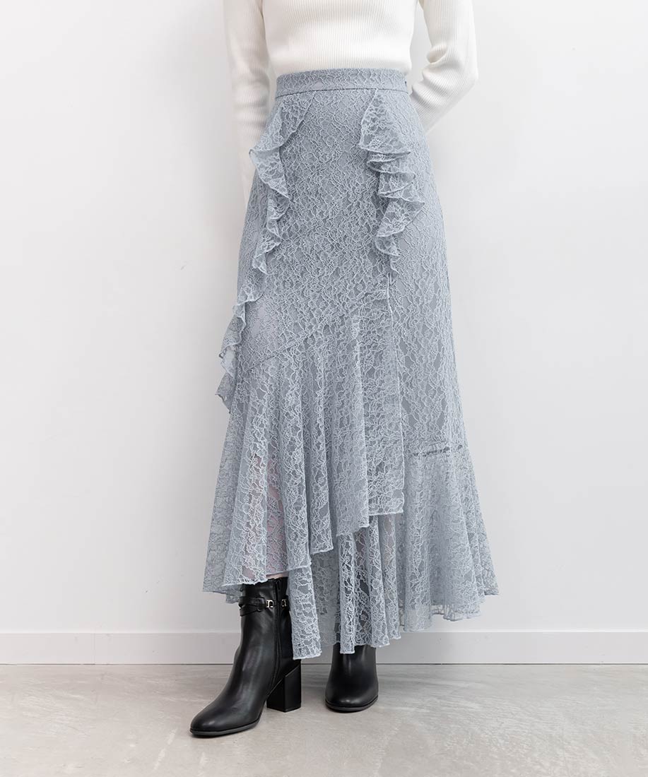 繊細なレースのラッフルデザインが目を惹く、マーメイドスカート。