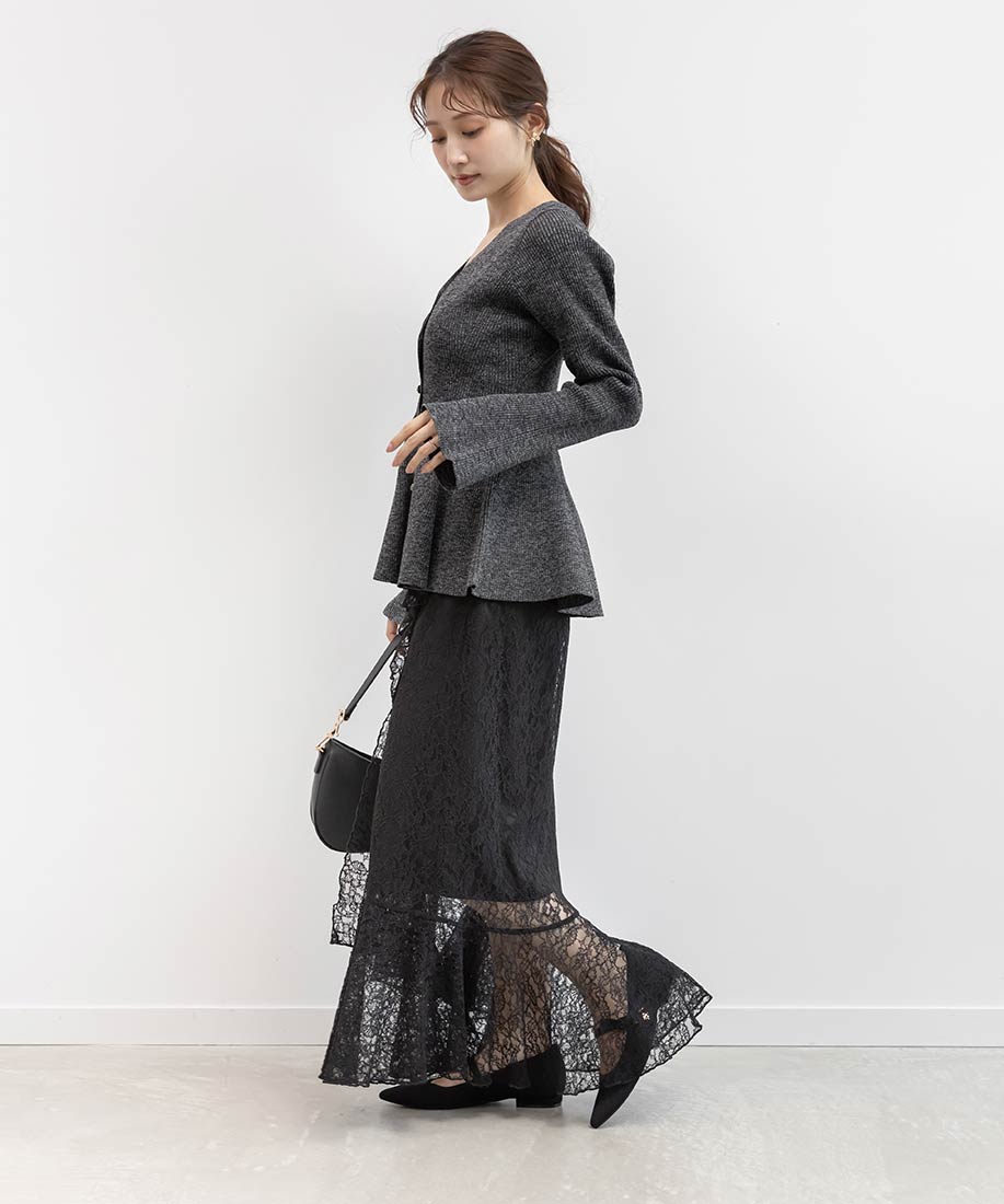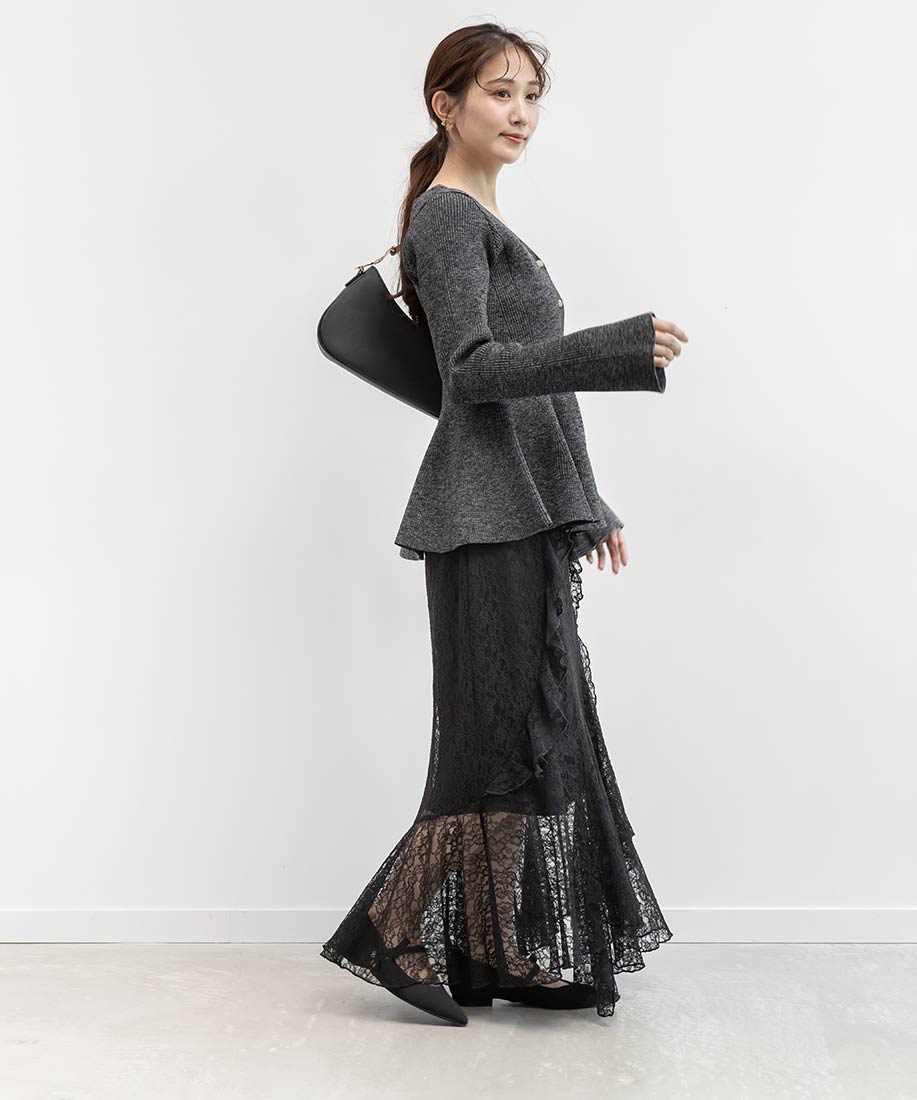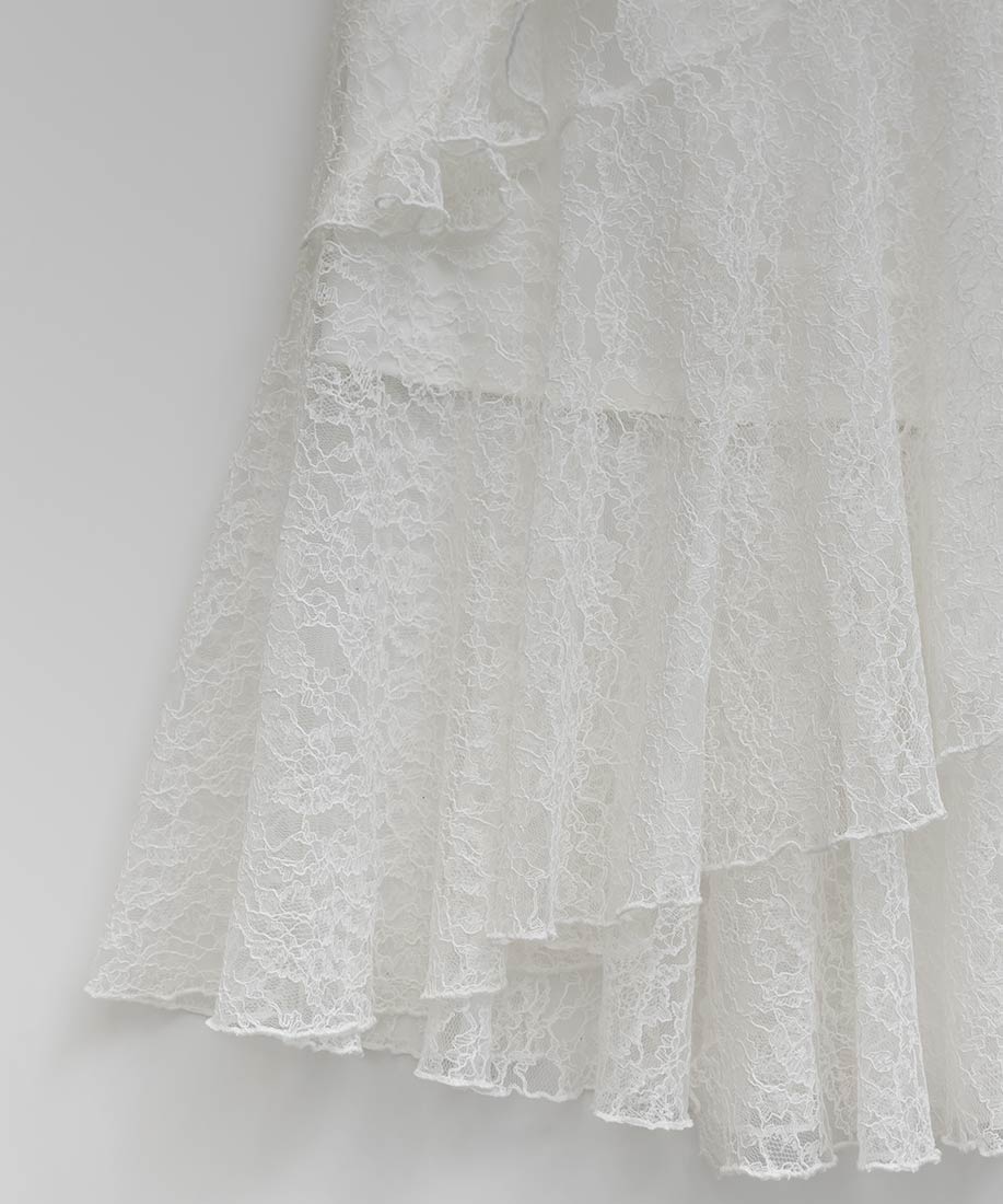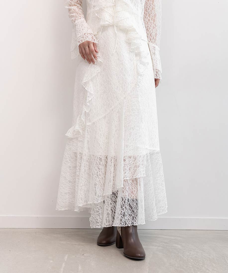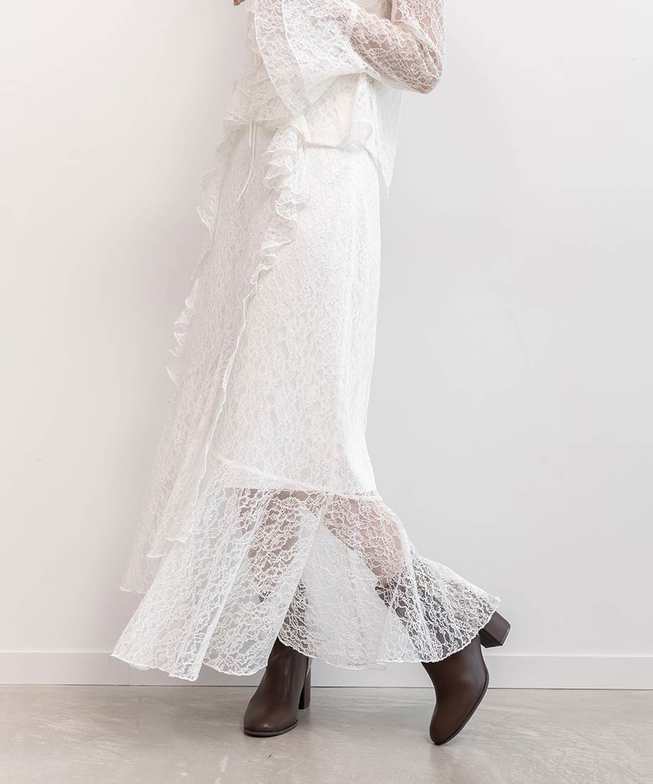 繊細なレースのラッフルデザインが目を惹く、マーメイドスカート。