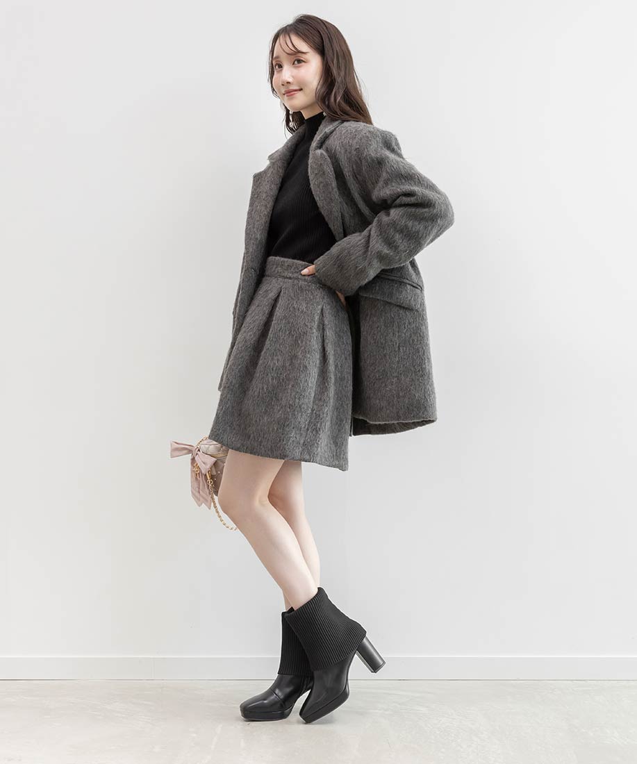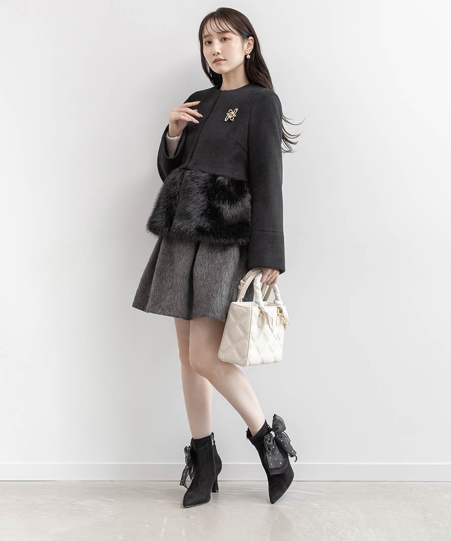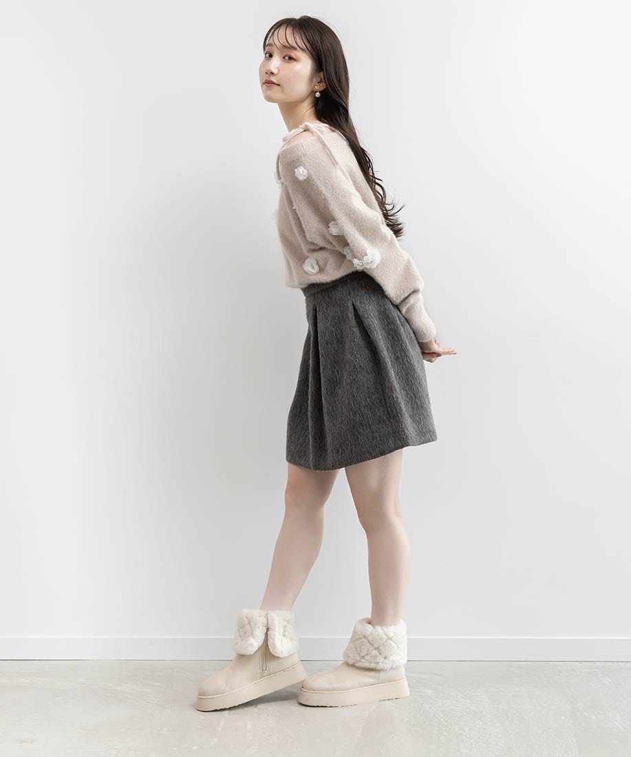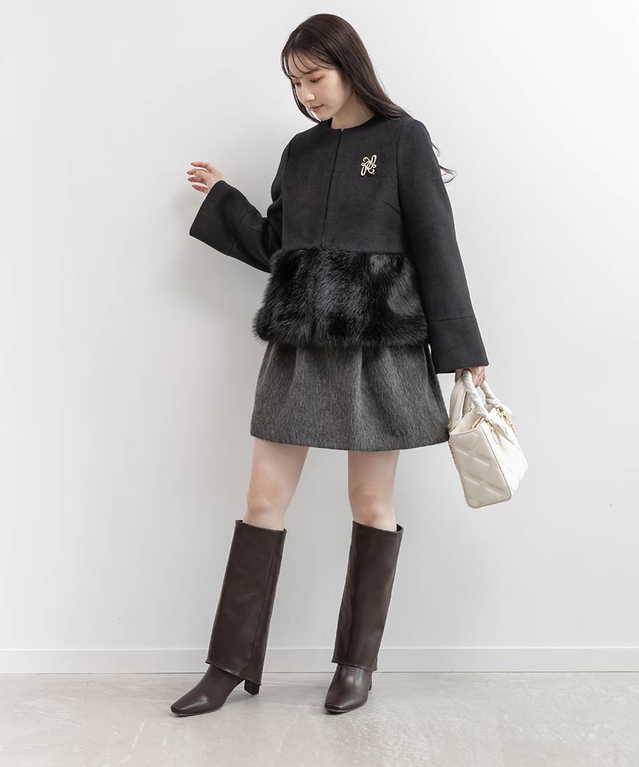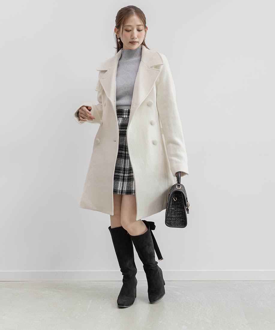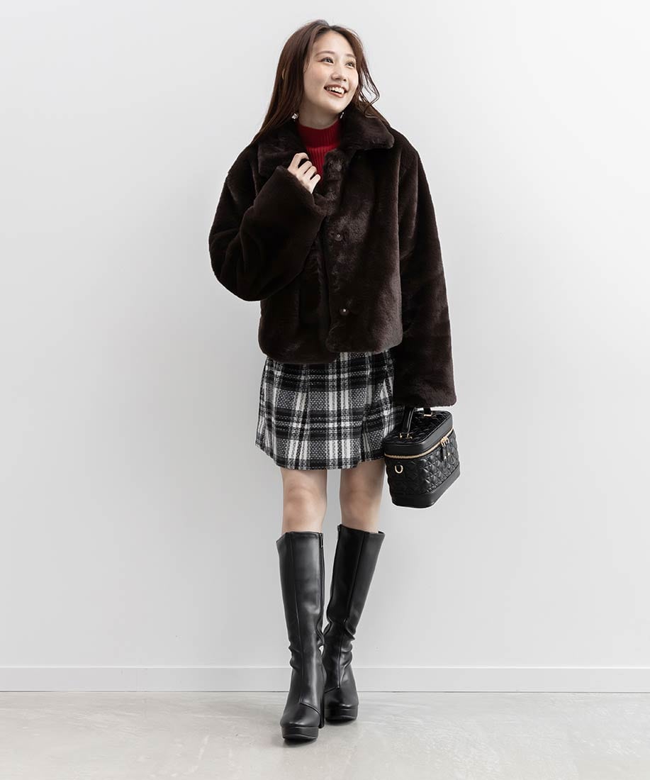 タイツやロングブーツ合わせで、冬のフェミニンスタイルが完成します。