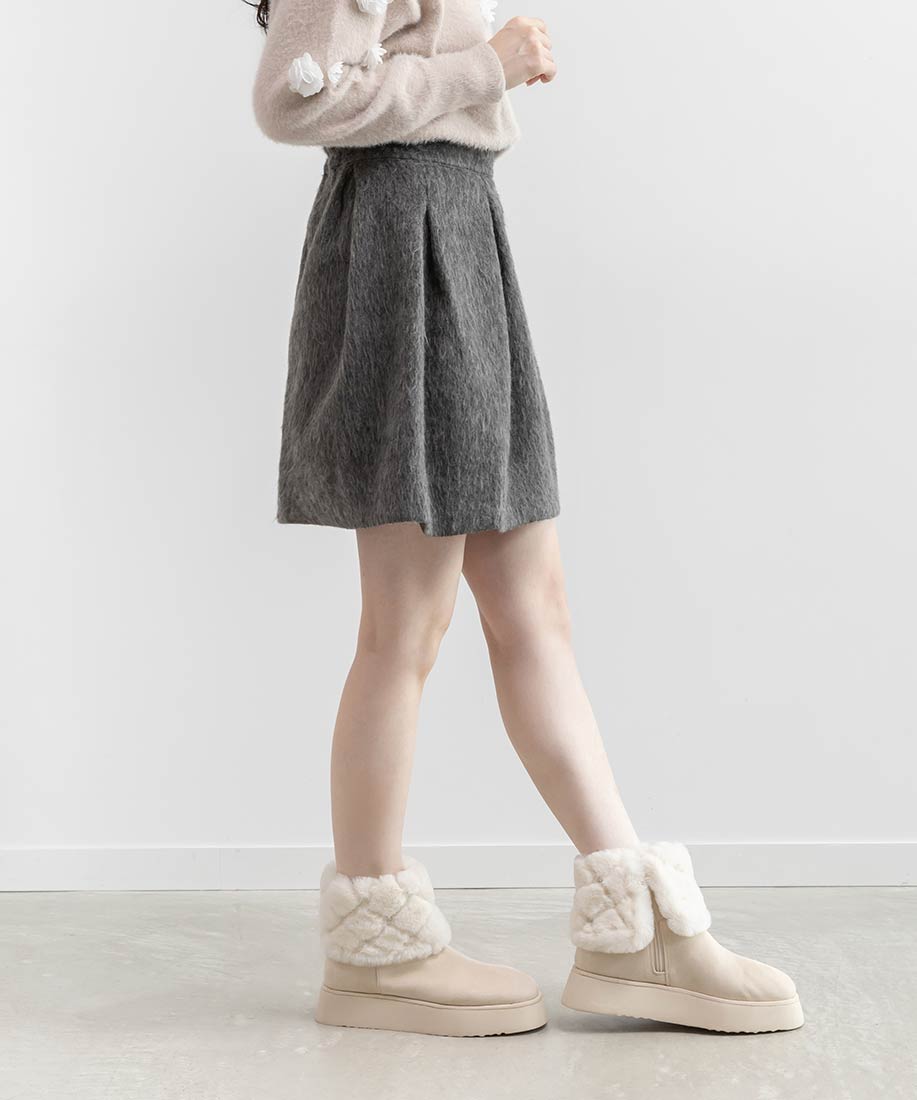 ふんわり広がる美シルエットが特徴的な冬の主役級フレアミニスカート。
