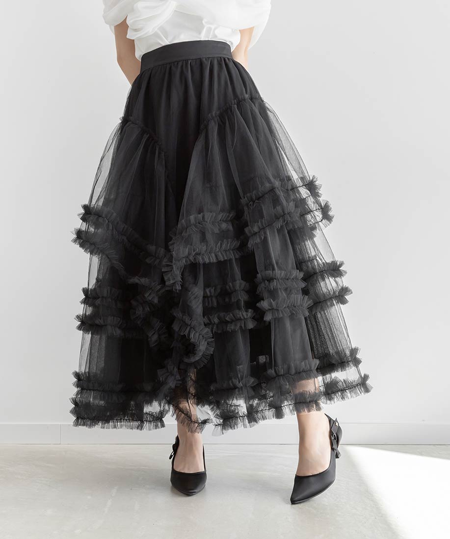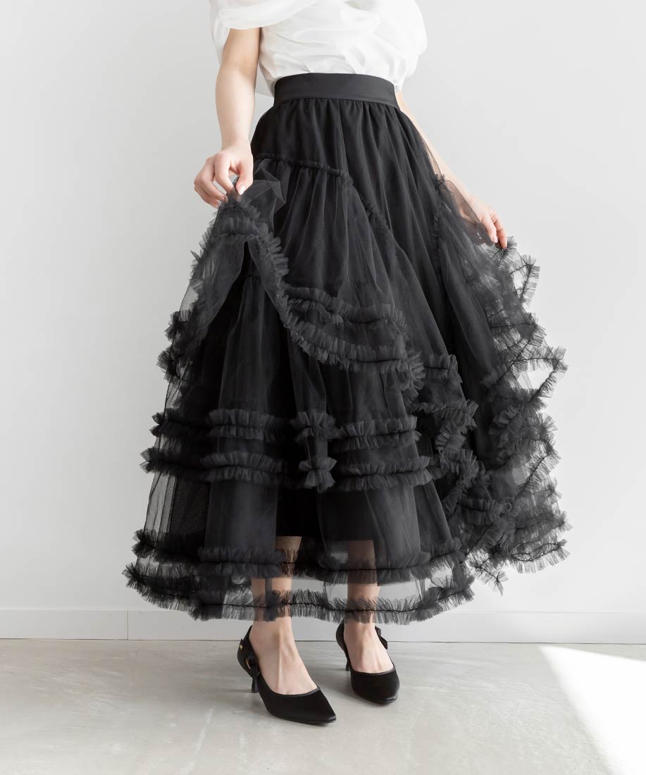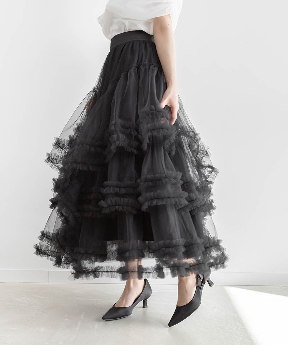 フリルティアードチュールスカート