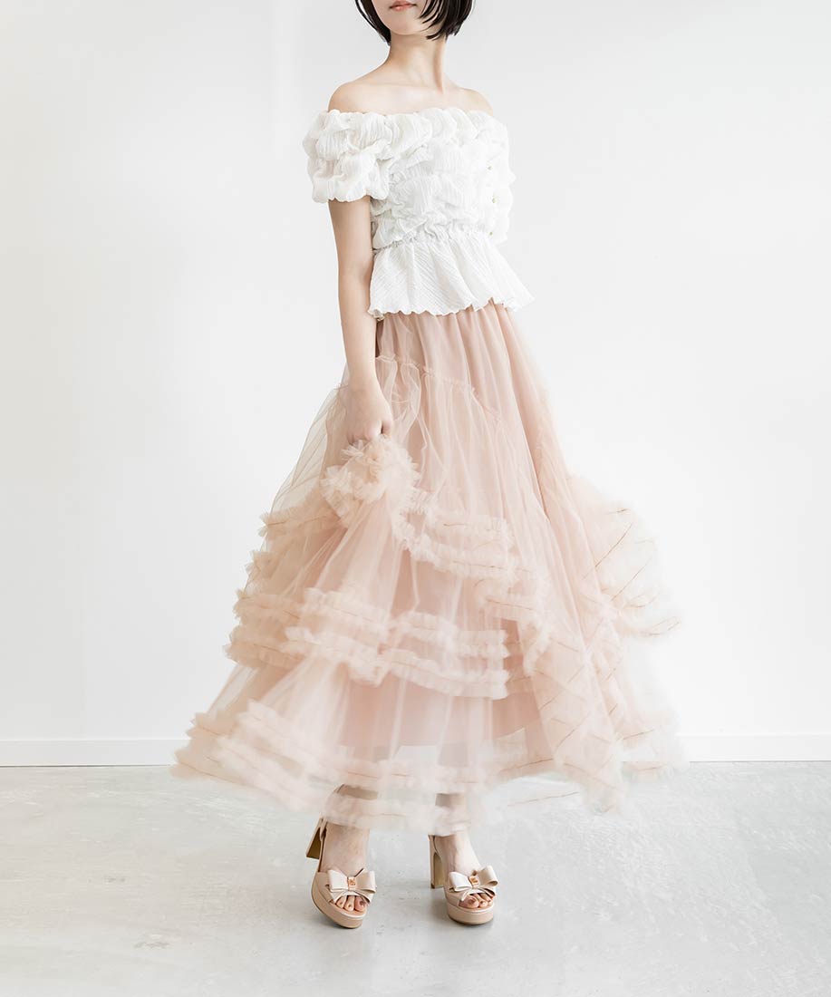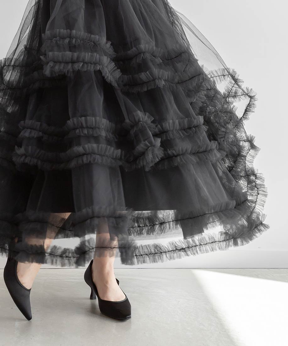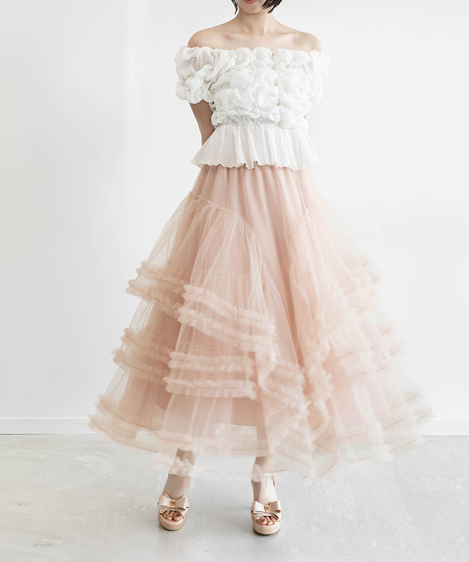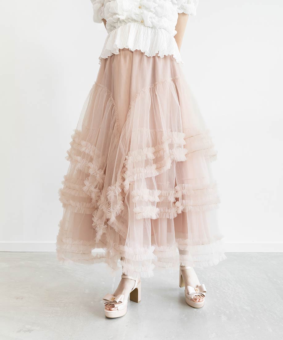 フリルティアードチュールスカート