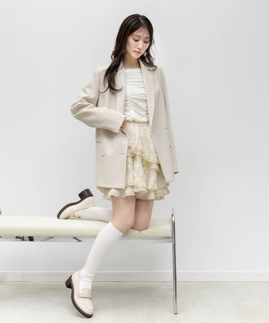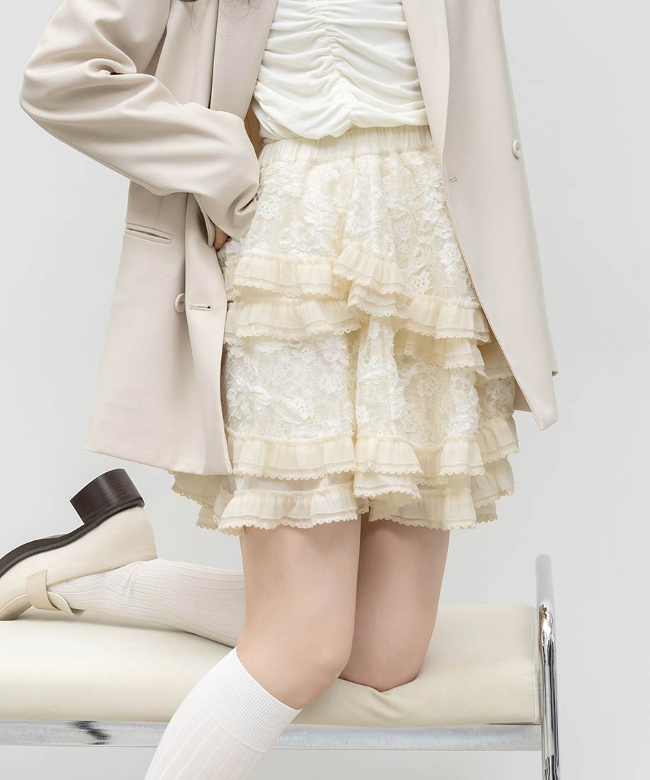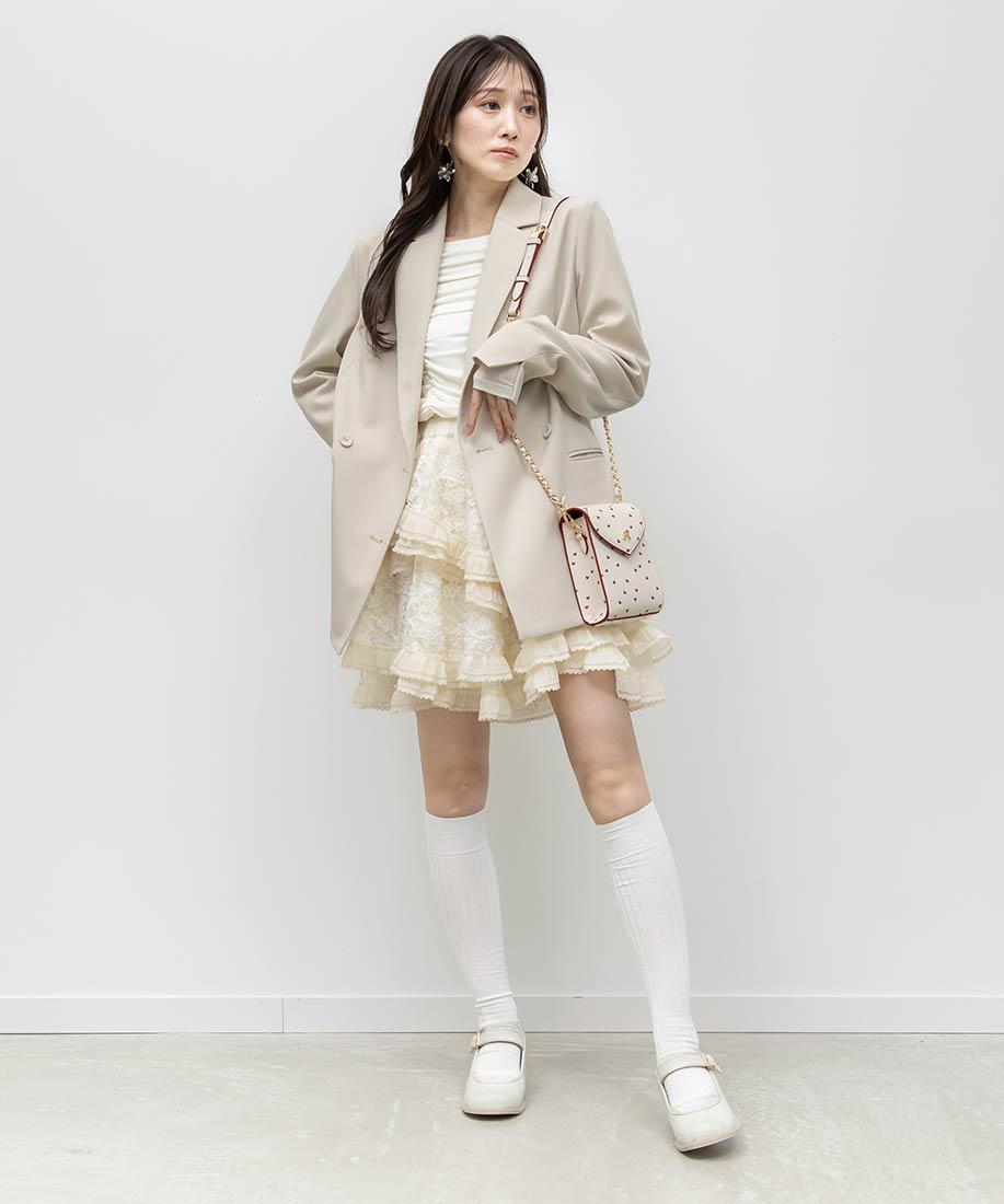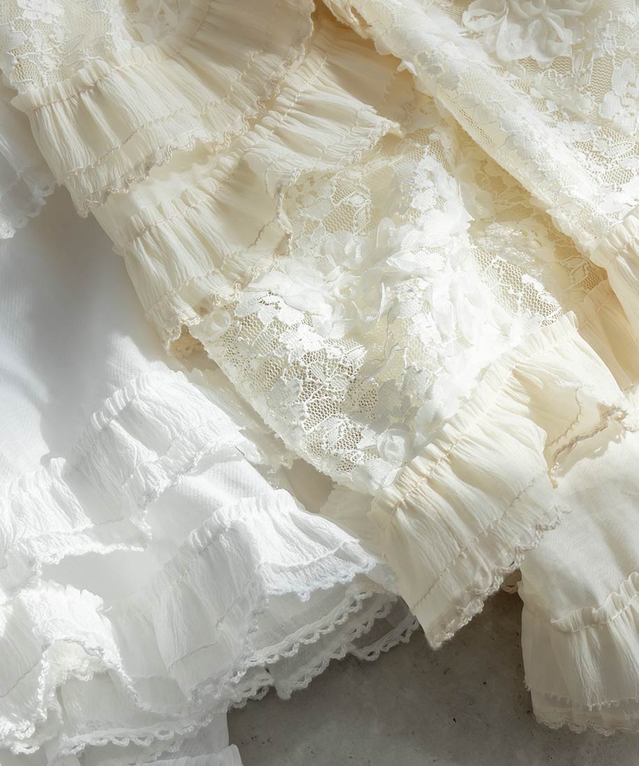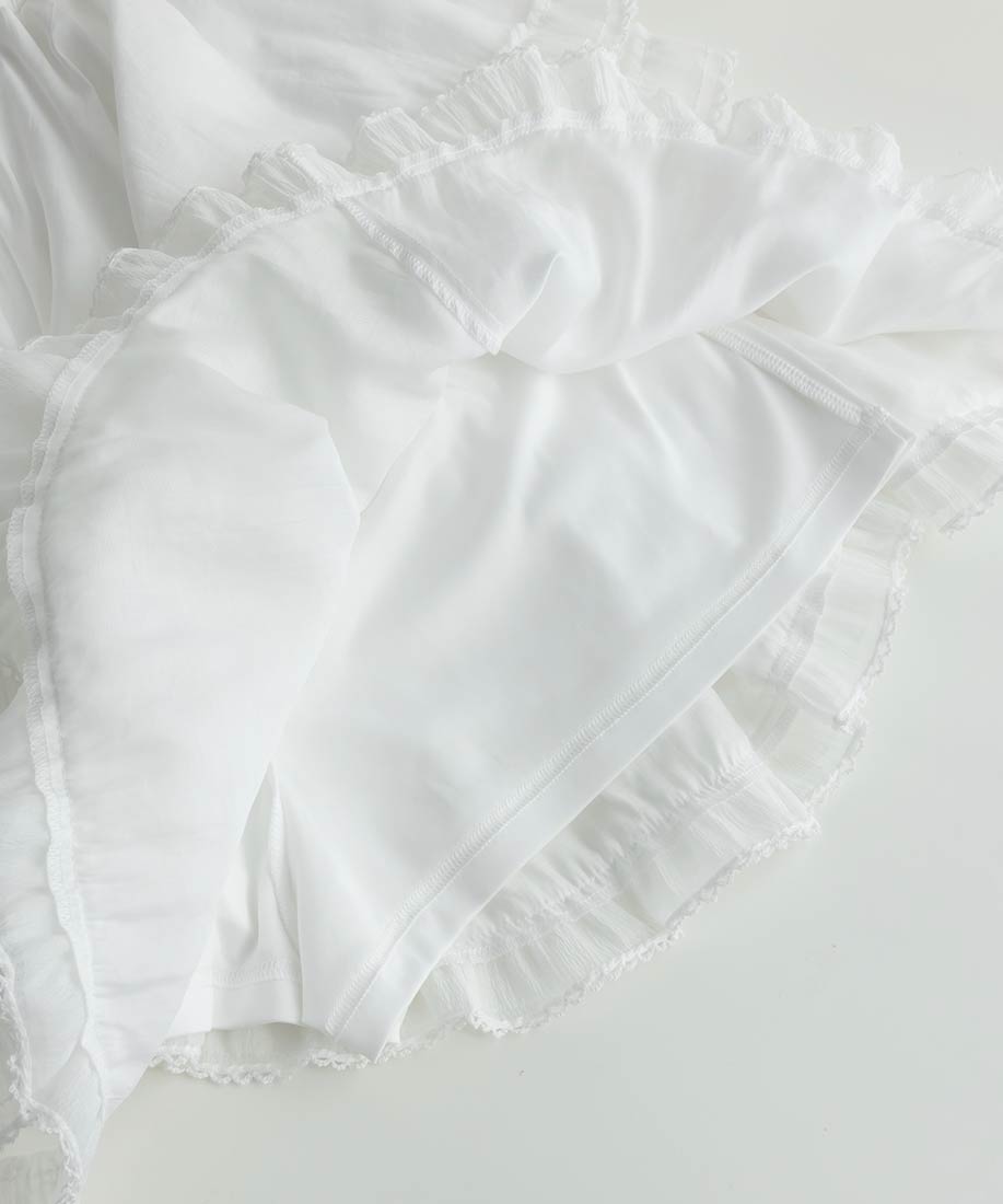 ホワイト⇒(表地)ポリエステル100%(裏地)ポリエステル100%アイボリー⇒(表地)ポリエステル100%(レース)ポリエステル93%、ポリウレタン7%(裏地)ポリエステル100%